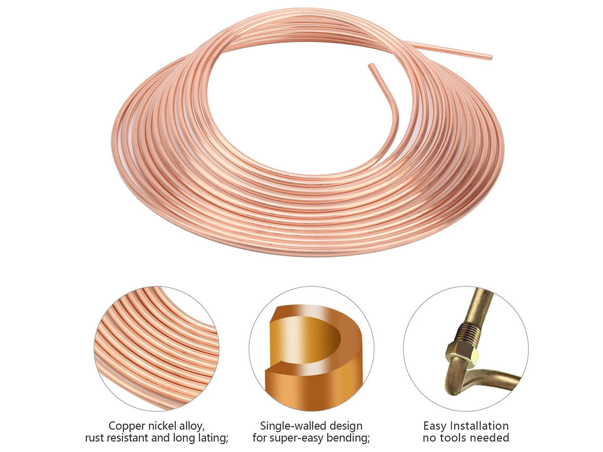 Replace your brake line with precision using the 25ft Gold Auto Brake Line Tubing Kit. This comprehensive Brake Line Fuel Tubing Kit includes 15 fittings, making it ideal for various applications. Crafted from heavy-duty copper-coated steel wire, it ensures durability and rust resistance, even in harsh conditions.