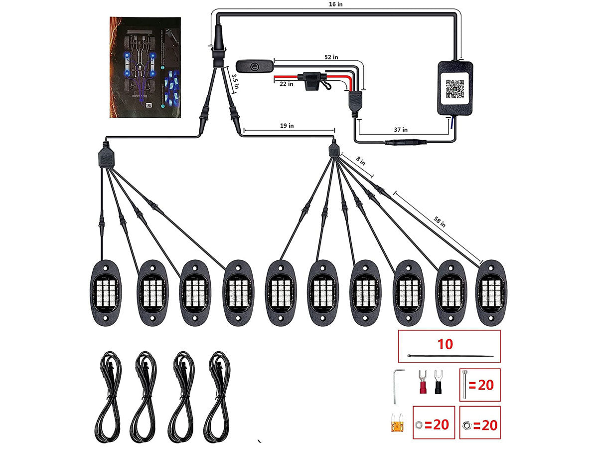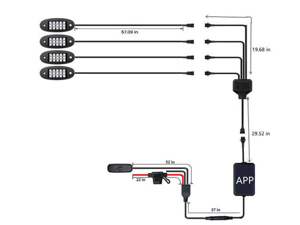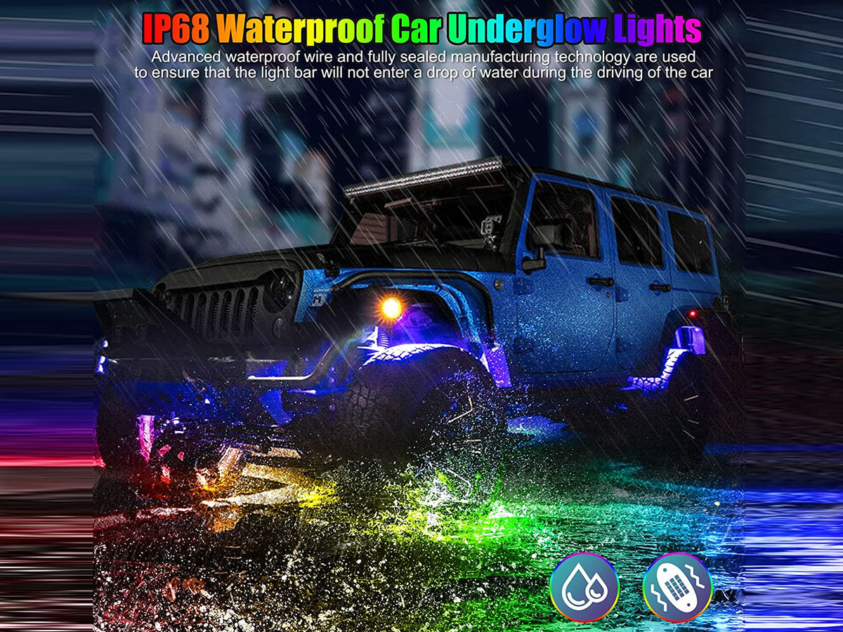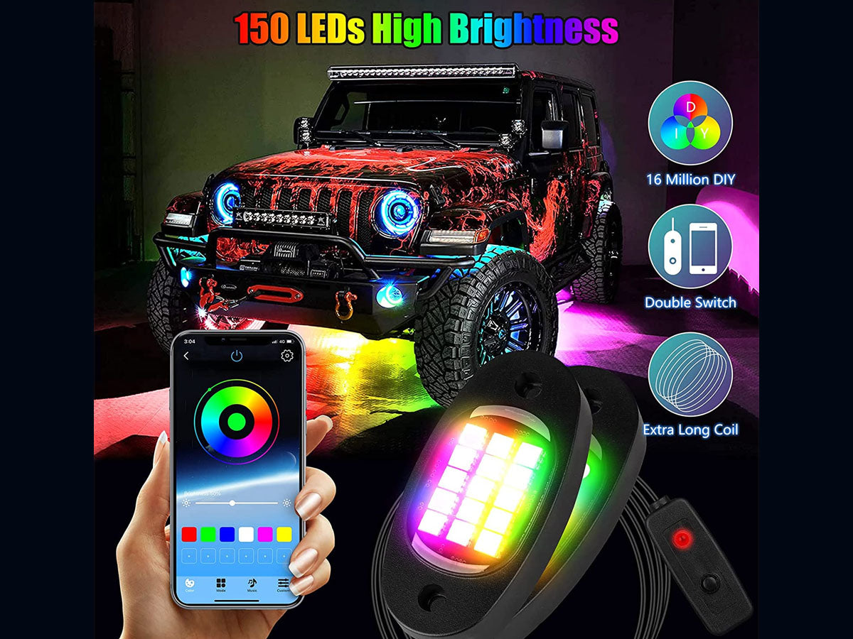 Rock lights kits can be widely used in cars, off-road, trucks, ATVs, UTVs, SUVs, ATVs motorcycles, boats, and so on, also used for interior, dome, neon lights, yacht lights, etc.