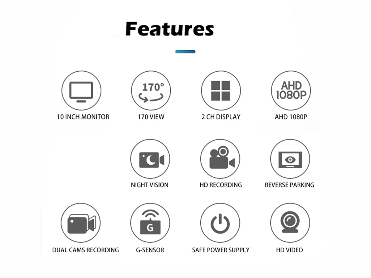 Upgrade your vehicle's safety and convenience with our Reversing Camera. The kit includes a 10" IPS LCD digital screen, delivering stunning 1080P HD resolution with a wide-angle camera (165°). While the IP68 waterproof, shockproof, and anti-fog camera ensures durability and reliability.