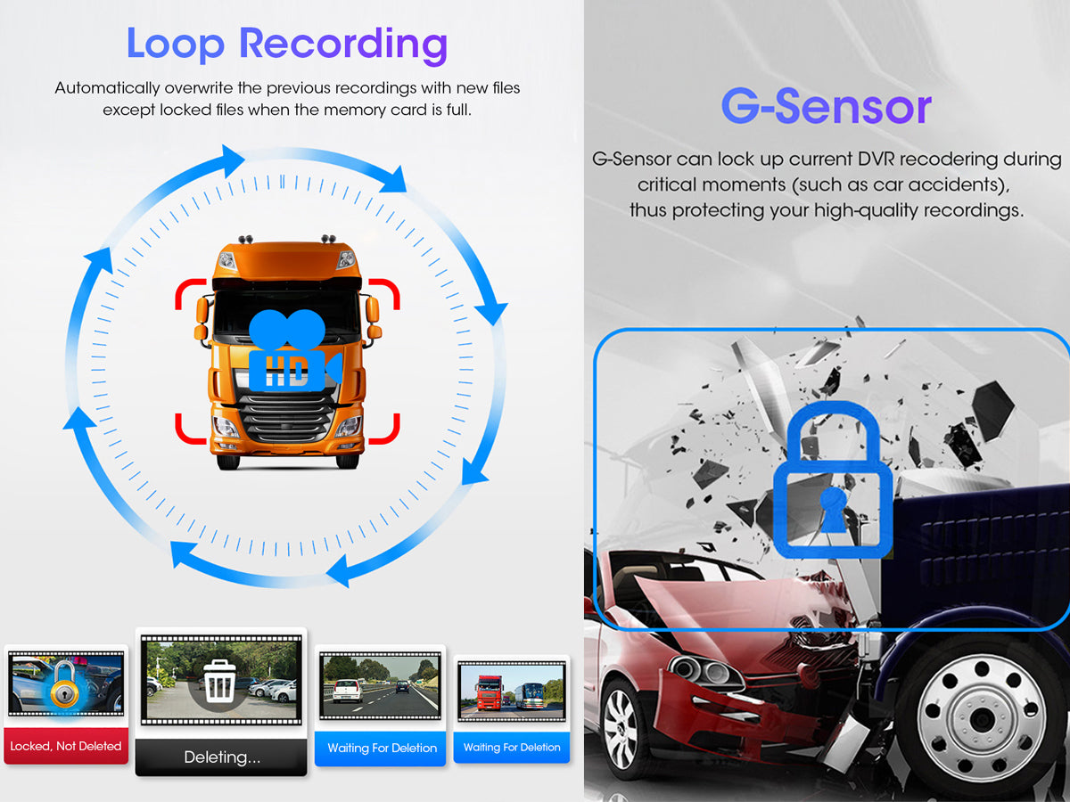 - Built-in Loop Recording and G Sensor Function