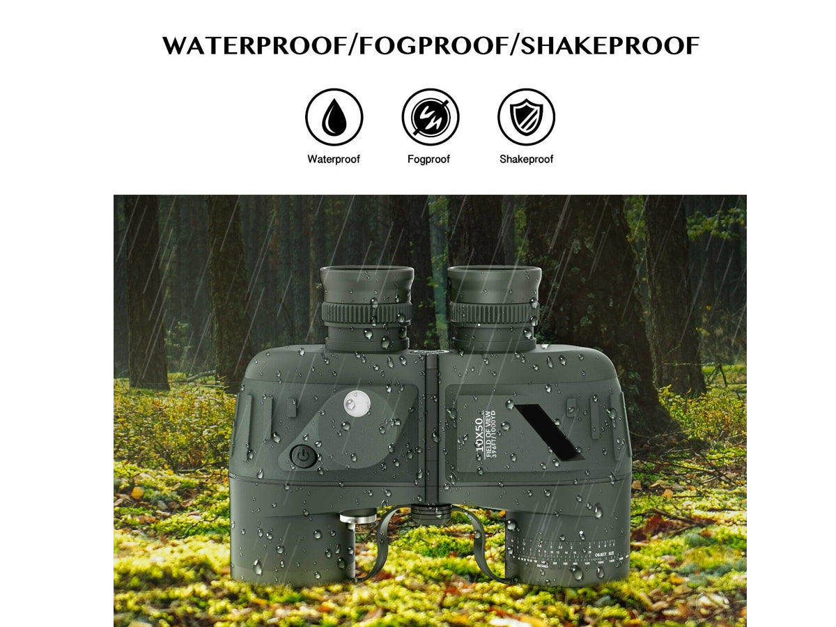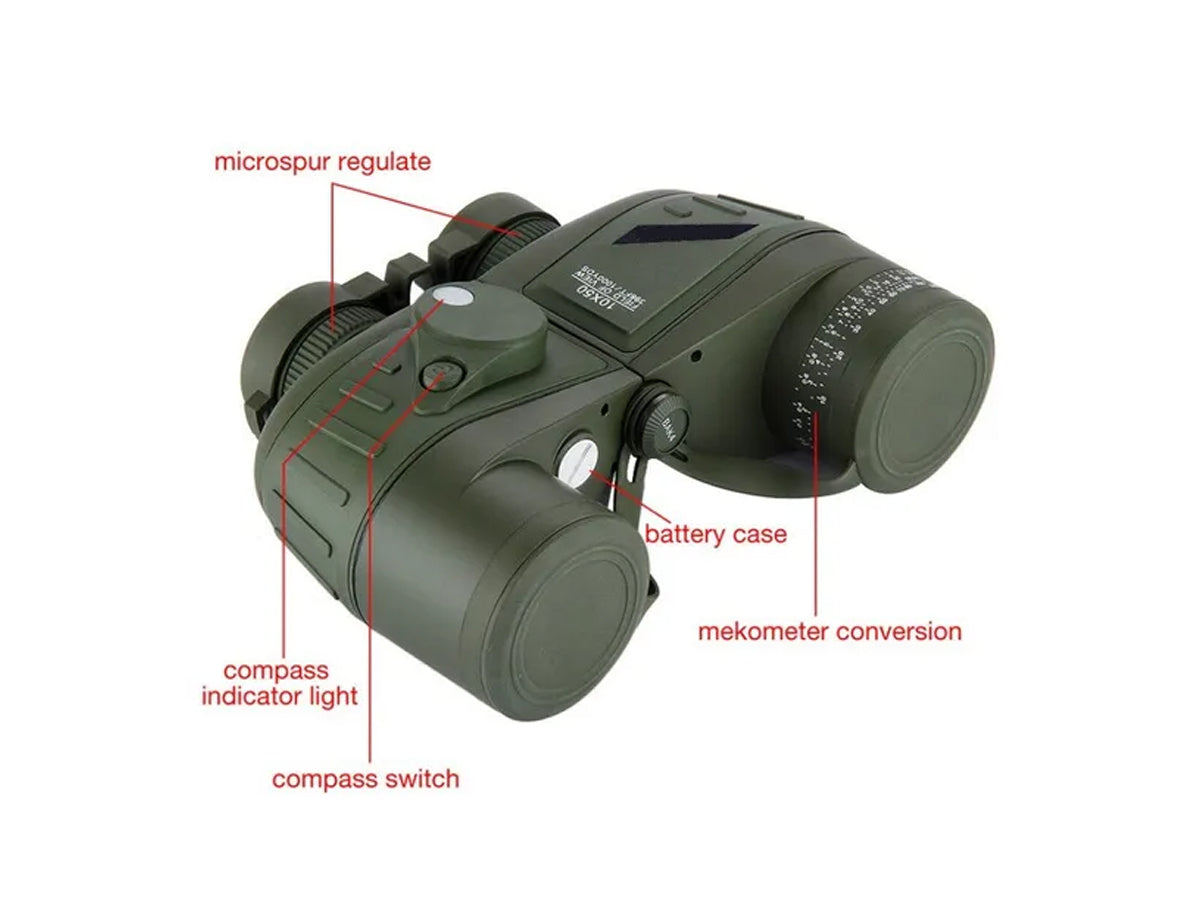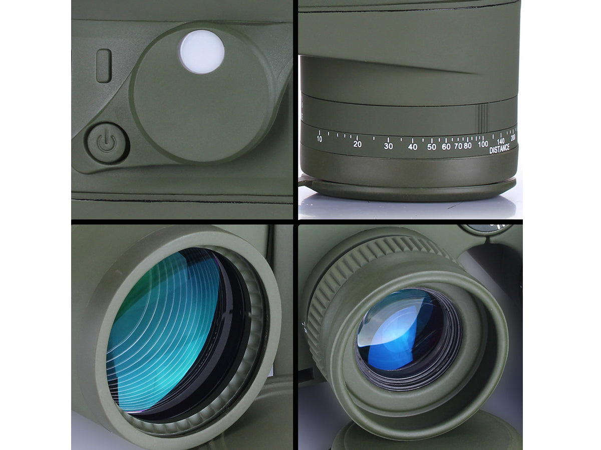 Experience clear, bright vision with this 10x50 Battery-Powered Night Vision Binocular. Featuring large, fully multi-coated lenses, a rangefinder, and dual focus adjustment eyepieces, it ensures sharp imaging. Its nitrogen-filled, waterproof design withstands extreme conditions, while the 24mm eyepiece and green film anti-reflex coating enhance light transmission for a crisp view with a 1000m field of view.