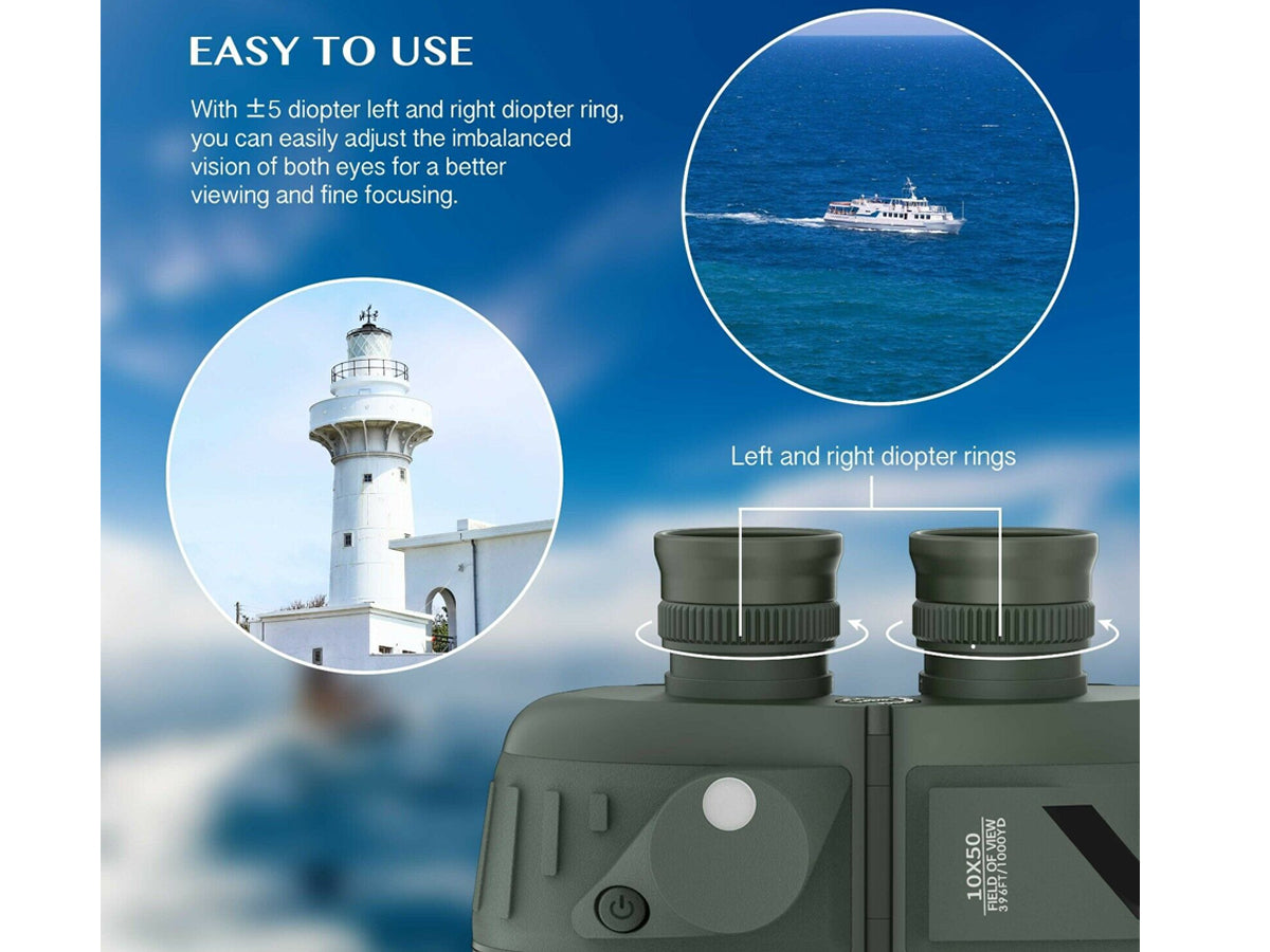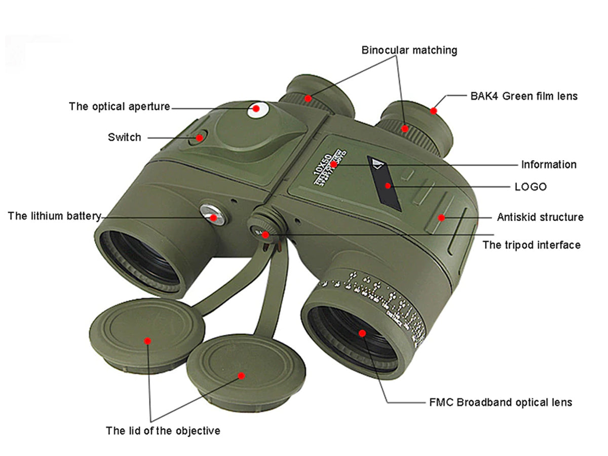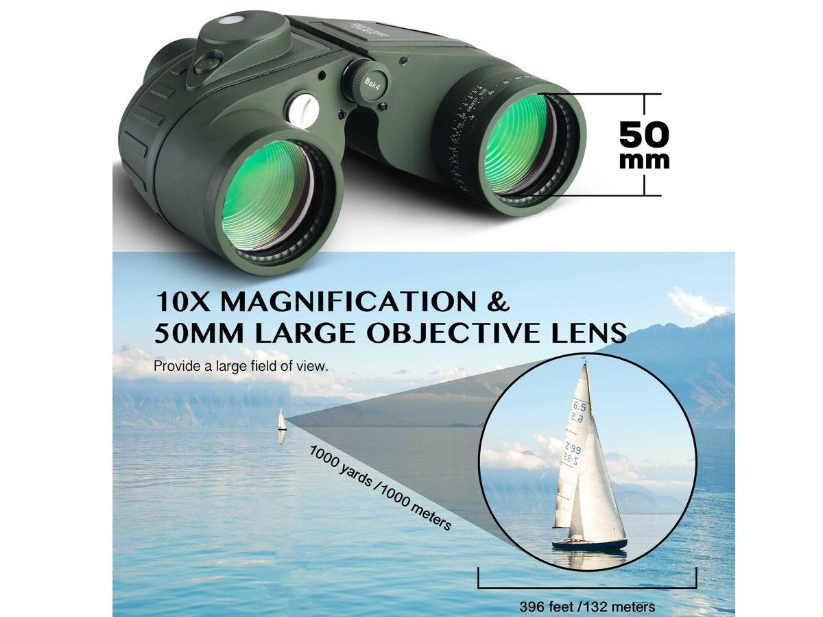 Experience clear, bright vision with this 10x50 Battery-Powered Night Vision Binocular. Featuring large, fully multi-coated lenses, a rangefinder, and dual focus adjustment eyepieces, it ensures sharp imaging. Its nitrogen-filled, waterproof design withstands extreme conditions, while the 24mm eyepiece and green film anti-reflex coating enhance light transmission for a crisp view with a 1000m field of view.