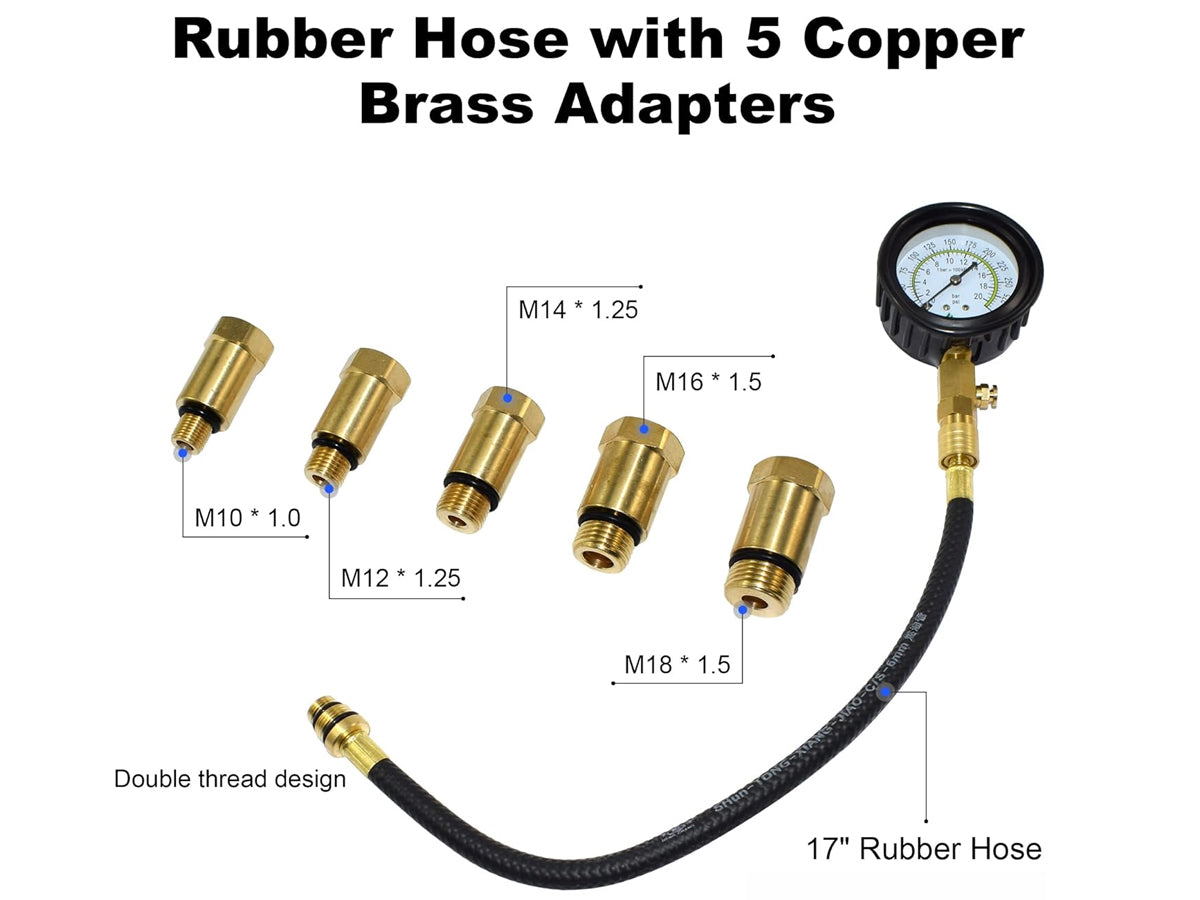 Perfect for diagnosing petrol engine compression issues in motorcycles, cars, trucks, lawn mowers, ATVs, and more.