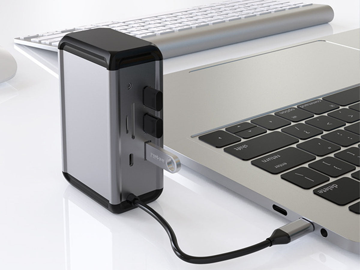 This 12-in-1 USB C hub is universally compatible with laptops and desktop computers with USB Type-C connectivity.