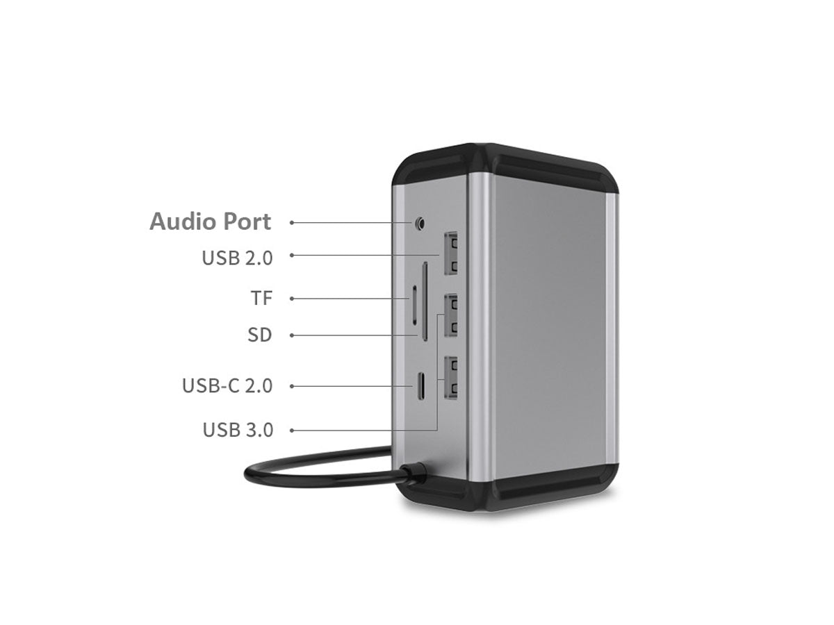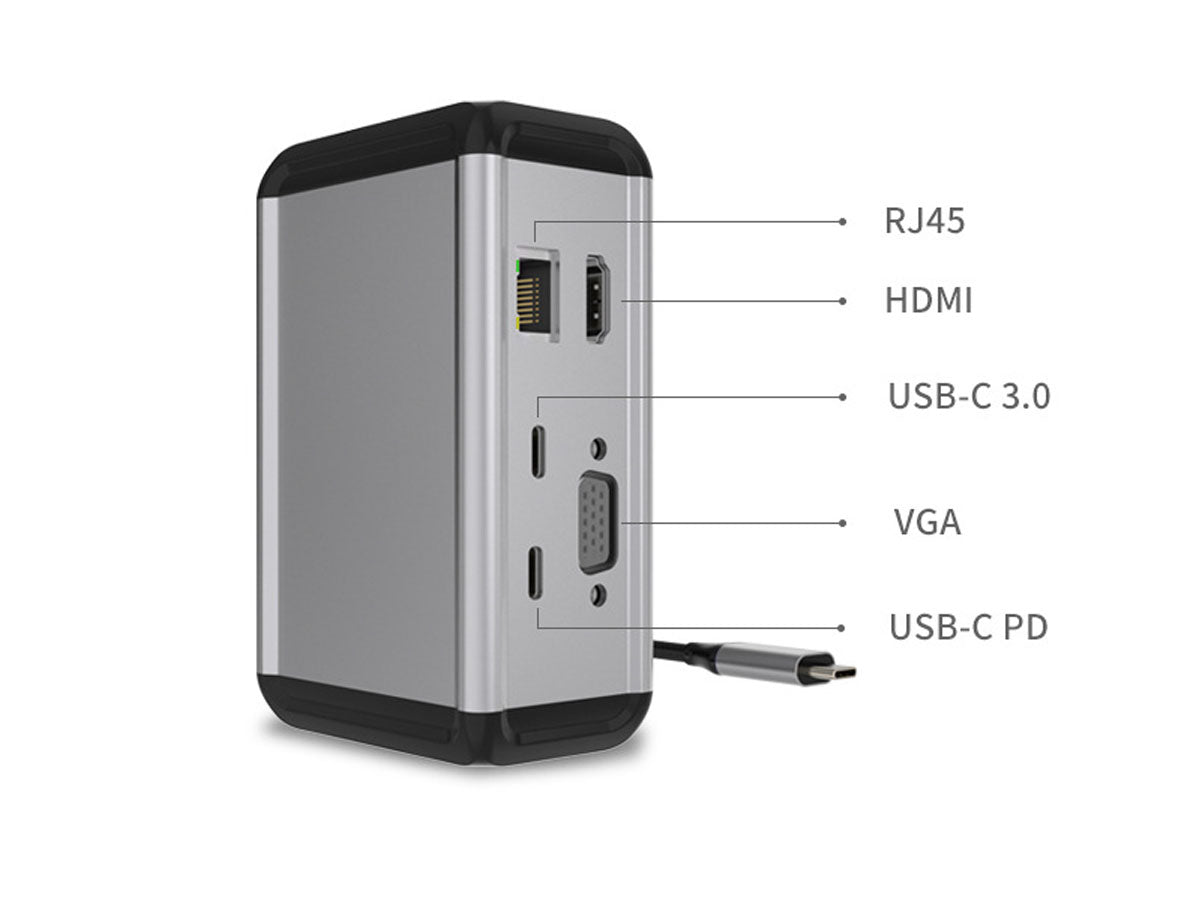 - Output Interfaces: HDMI, VGA, SD Card, TF Card, USB2.0, 2 x USB3.0, 2 x USB-C, USB-C PD Port, 3.5mm AUX, RJ45 LAN