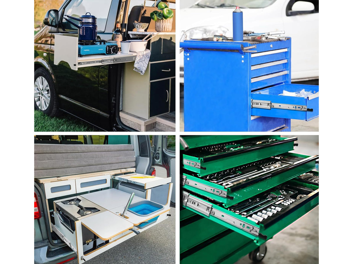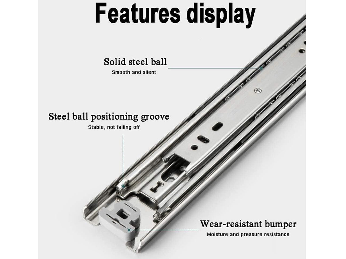 Crafted from durable cold-rolled steel and equipped with wear-resistant rubber pads, these slides guarantee strength, stability, and long-lasting performance. Ideal for various applications, these drawer slides are a must-have for enhancing functionality and safety in your storage spaces.