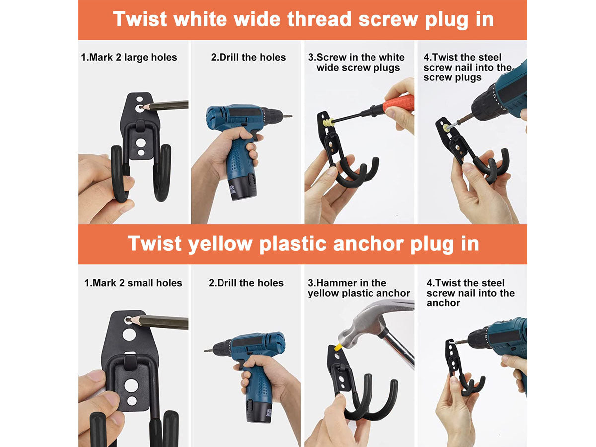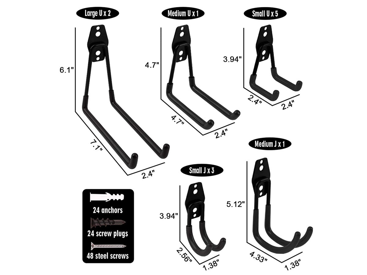 These 12 Pack Garage Storage Hooks and Hangers include a combination of fixed and large, medium and small hooks. It can meet different usage needs in different scenarios and create efficient storage space. These garage hooks are suitable for plaster, wood, brick, and concrete walls. You can install them effortlessly. The hooks allow you to organize and hang heavy items up to 40kg.