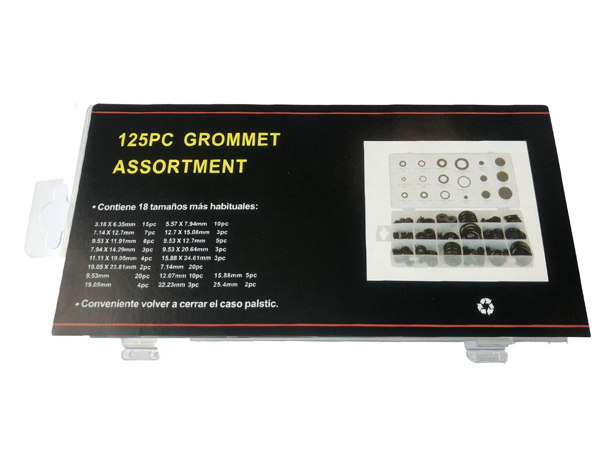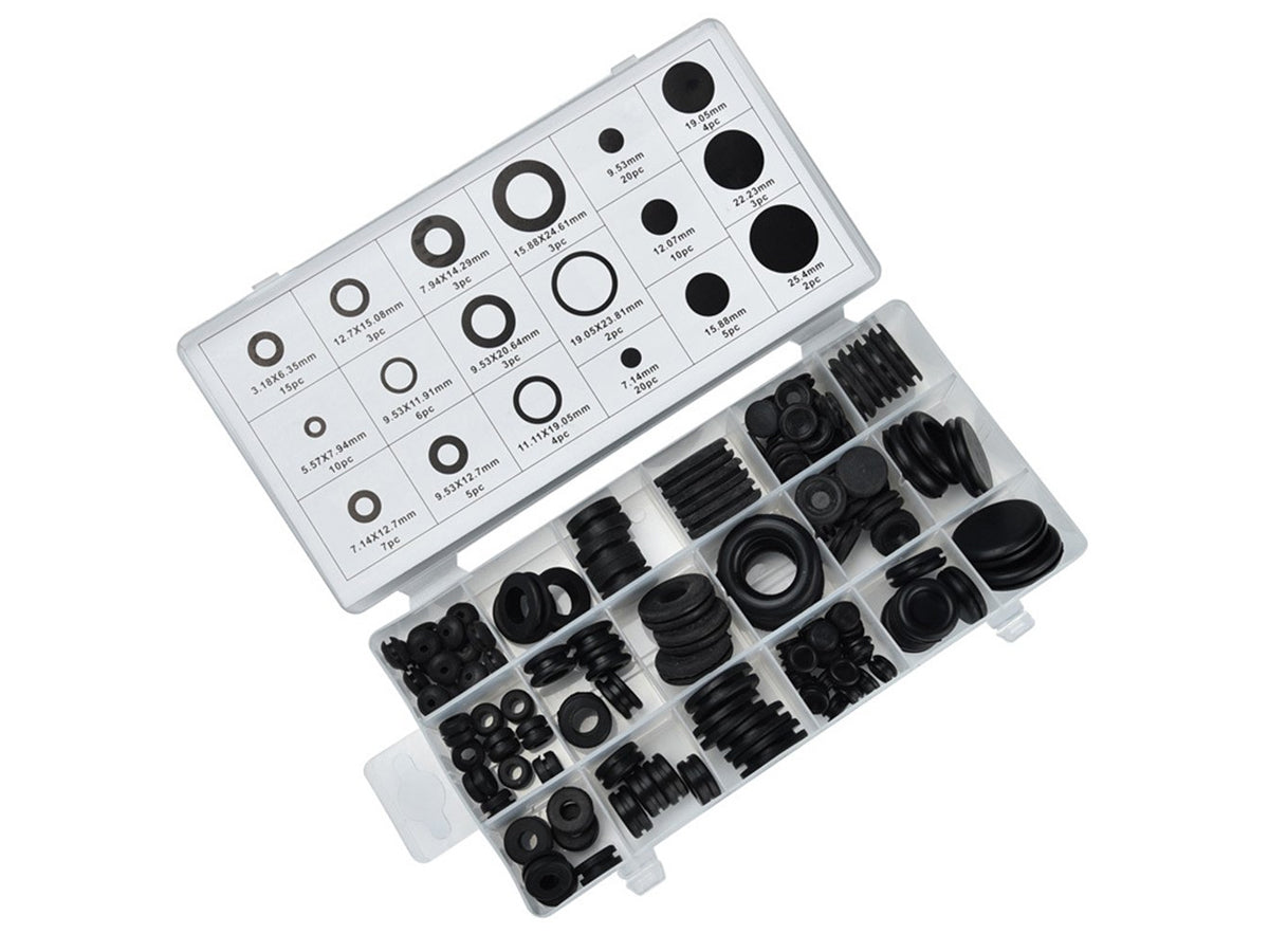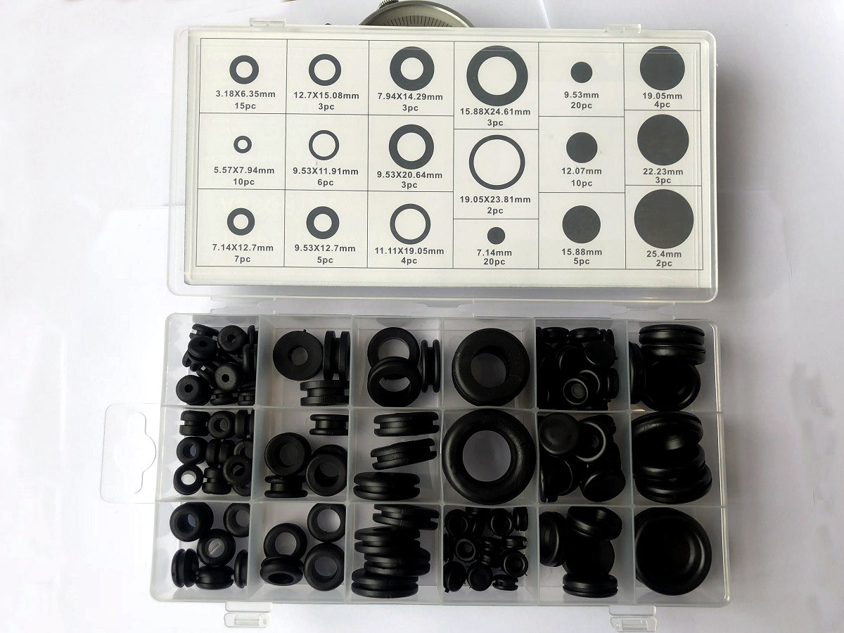 This 125Pcs Rubber Grommet Set comes in a plastic carrying case which allows safe storage and easy transportation. The box includes various size grommets including some with no opening, to seal a hole no longer used, or to make your own size center hole if needed, and so on.