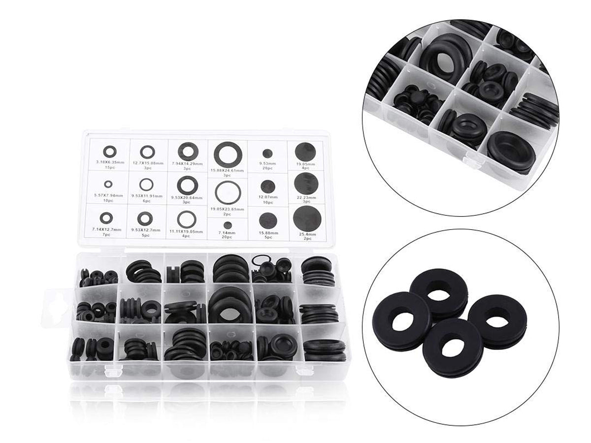 This 125Pcs Rubber Grommet Set contains 18 different sizes which mechanically protect against the sharp edges of drilled or punched holes for wiring, cable, tubing, and piping, offering a neat look for your furniture and electrical applications. Having this 125Pcs of Rubber Grommet assortment, no matter you Planned or Unplanned, you can find the perfect fitting size Here!