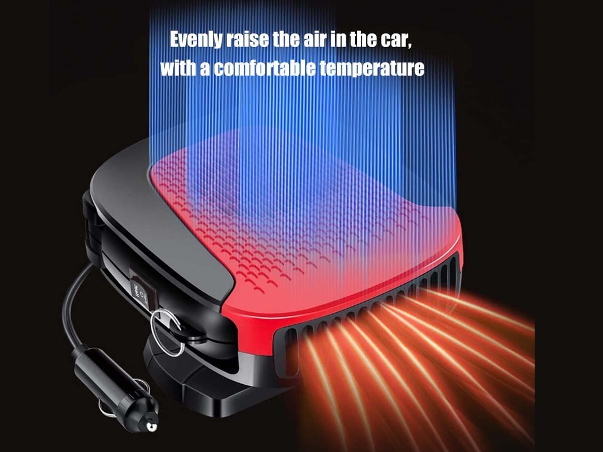 This Portable Car Heater Fan can blow natural wind and warm wind and is designed to quickly clean the frost, fog, and fog on the windshield of the vehicle.