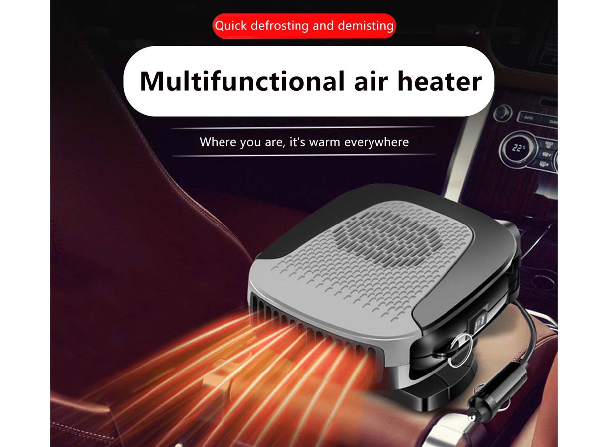 This 2-in-1 Portable Car Heater Fan is designed to quickly clean the frost, fog, and mist on your vehicle's windshield, and ensure your driving safety. This car Fan Heater can blow natural wind and warm wind and is designed to quickly clean the frost, fog, and fog on the windshield of the vehicle. The Heating Fan can also be used as a fan to cool your car in the summer.