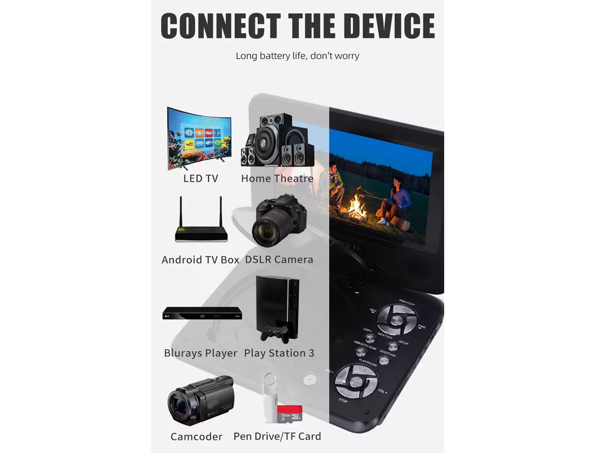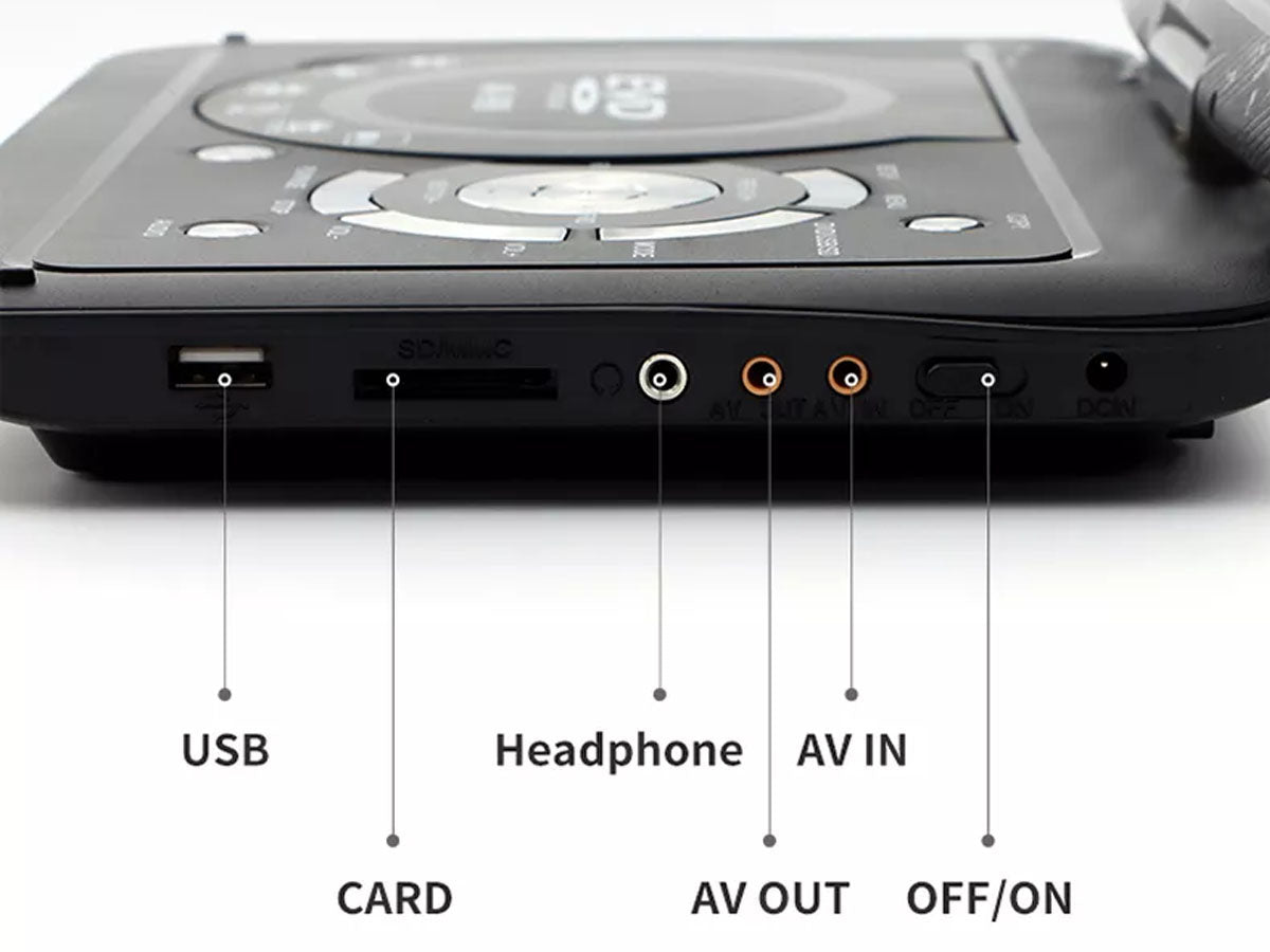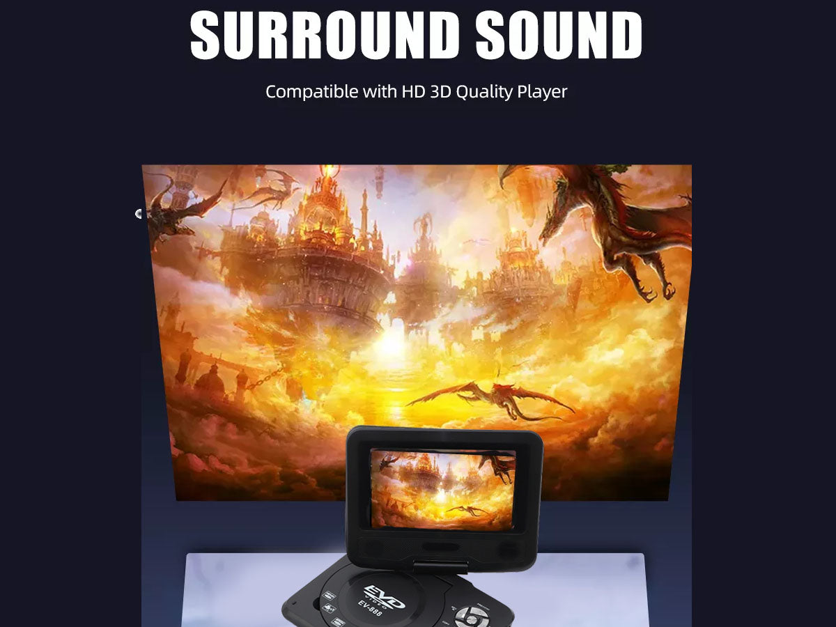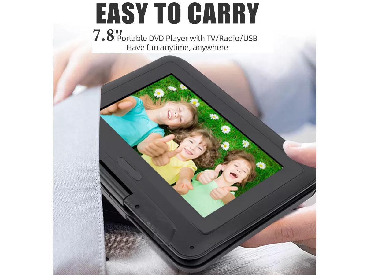 This Portable DVD Player is a multi-functional combination of a DVD player, TV player, FM radio receiver, memory card reading, playing games, and so on. This is suitable for home, office, car, gaming, etc.