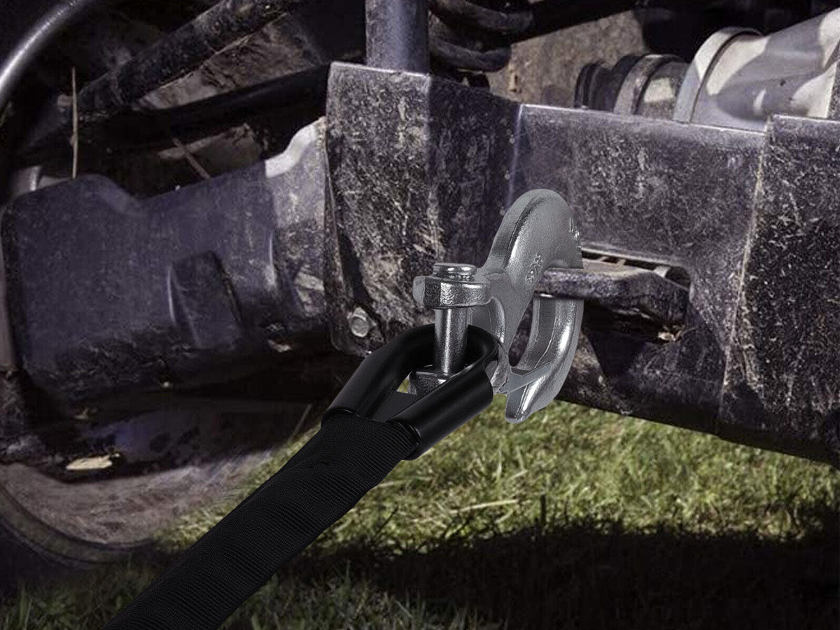 Experience strength and durability with our 15m Synthetic Winch Rope! Made of 12 strands braided ultra-tough nylon, it is water, moisture, and corrosion-resistant, ensuring long-lasting use. With a breaking strength of 9,500KG and minimal stretch, this rope is perfect for heavy-duty winching jobs. It also features a double protective sleeve and a heavy-duty snap shackle and rubber stopper, making it easy to handle while preventing wear and overheating.