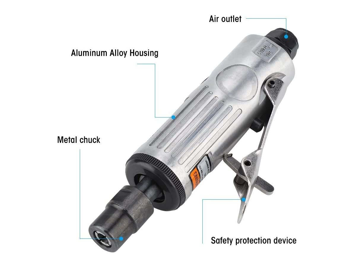 This pneumatic grinder uses compressed air as power, is energy-saving, and environment friendly. The high rate of 25000rpm delivers strong power to help you get your polishing work done quickly.