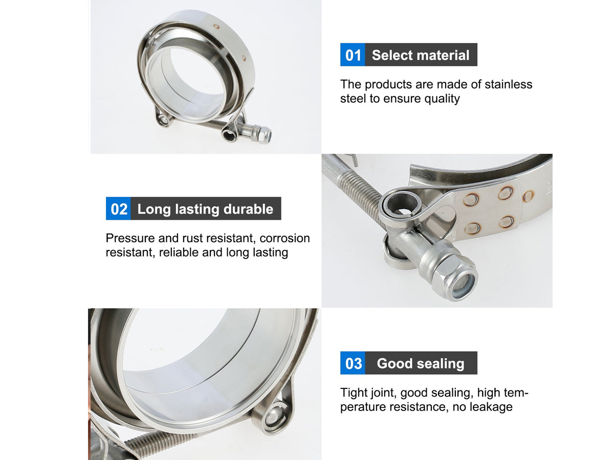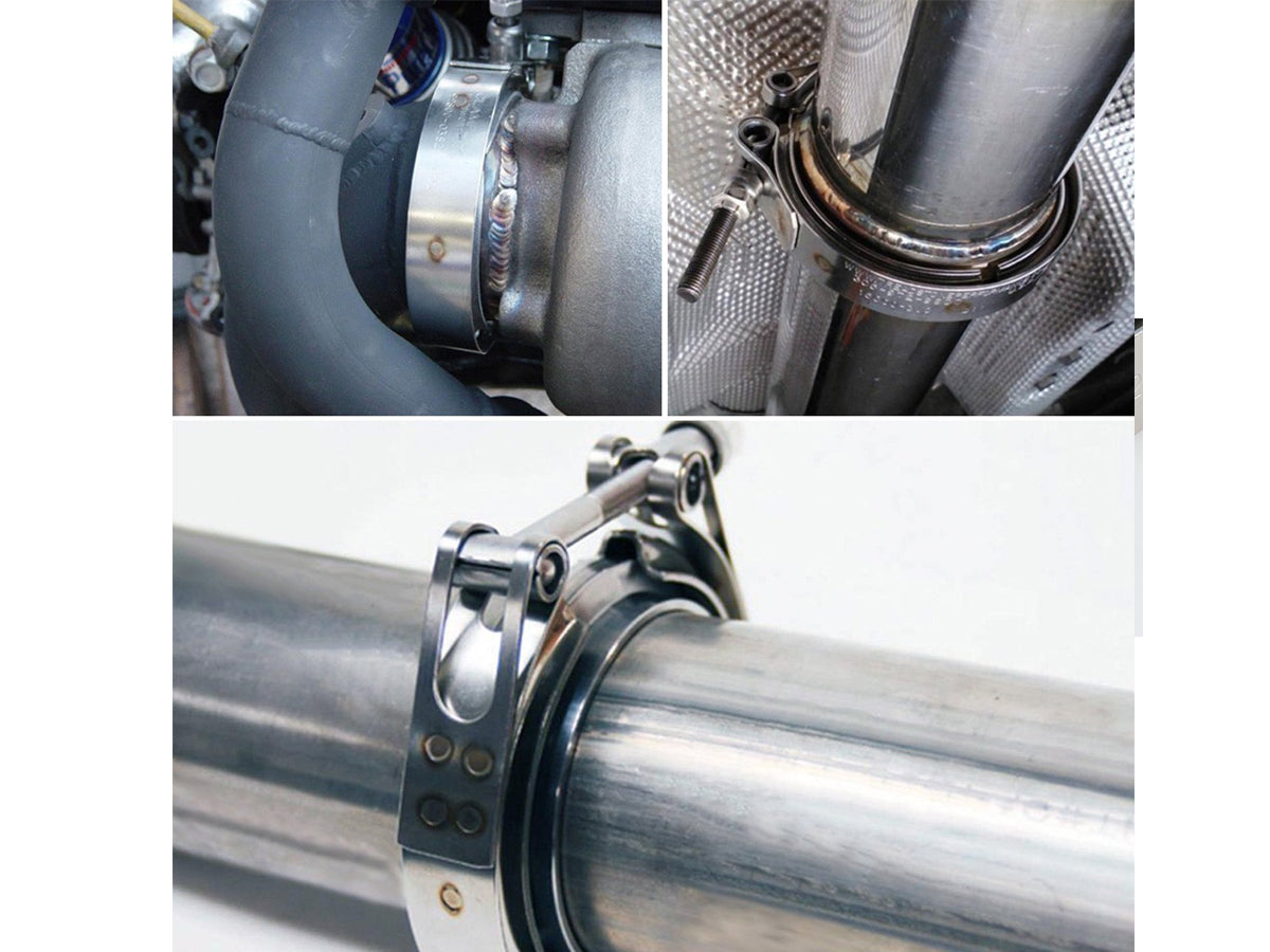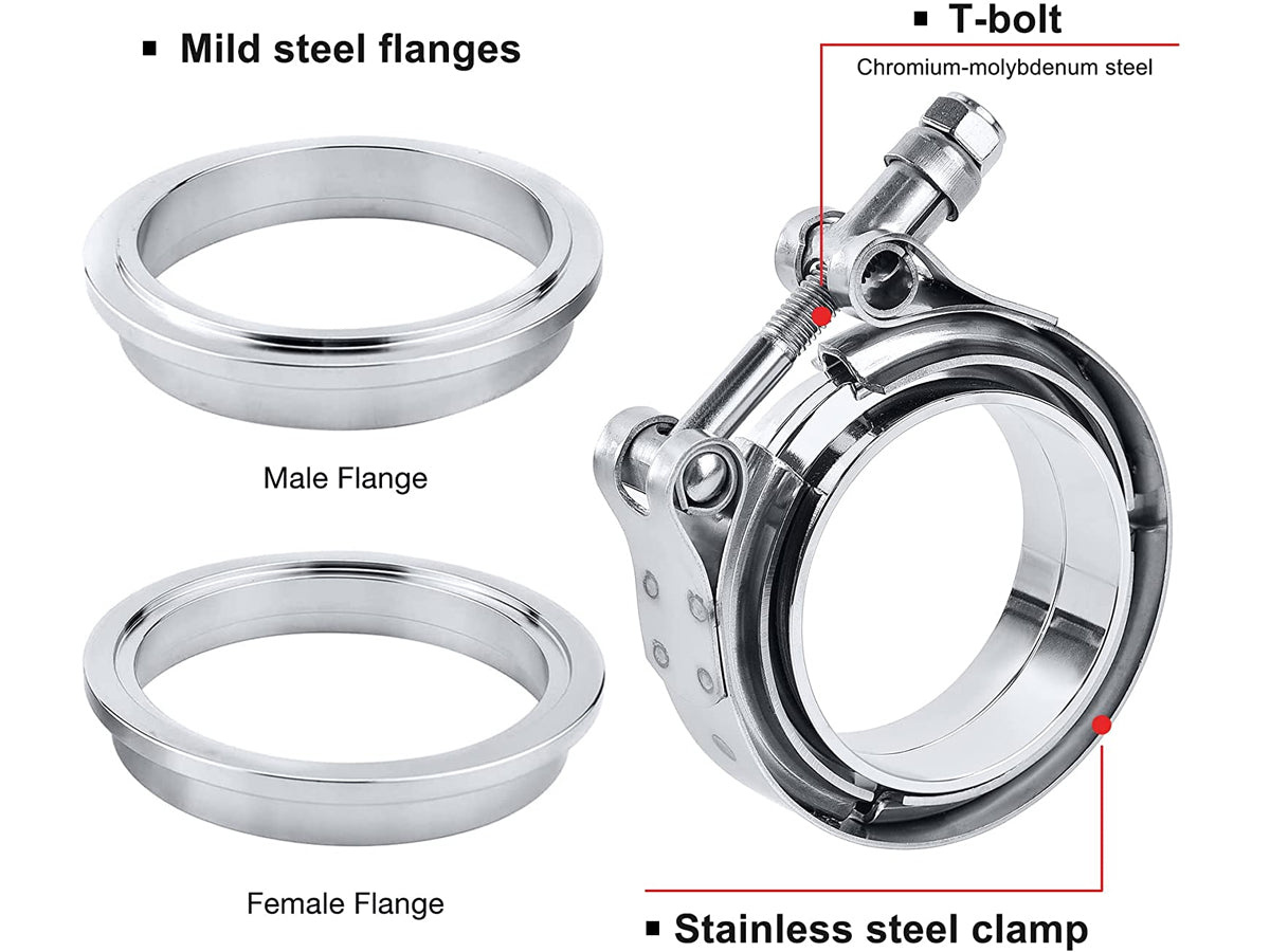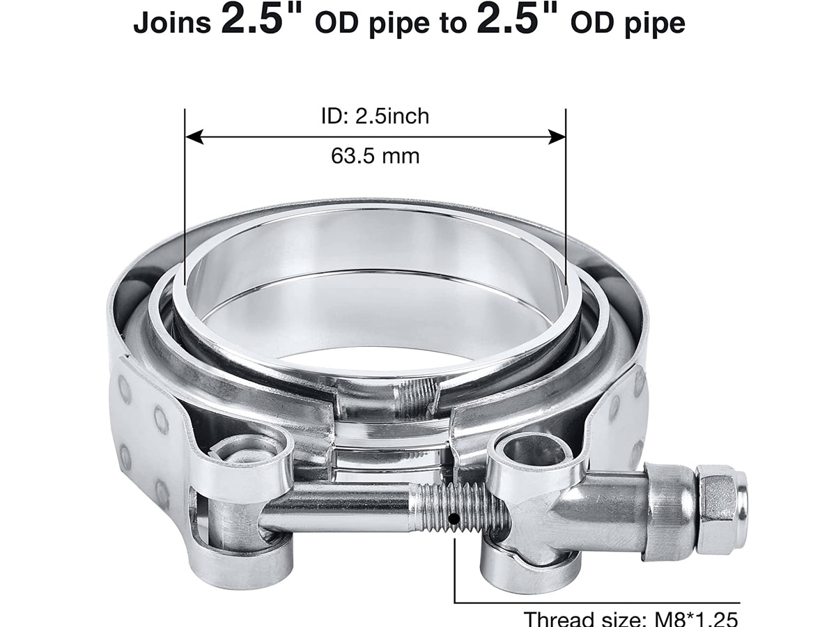 Introducing the 2.5" Throat Hoop Flange Clamp - the perfect solution for joining 2.5" OD pipes! Made of high-quality stainless steel strips, this clamp features a unique anti-loose spring design that ensures strong sealing performance. It is easy to install and remove and is rust-resistant, sturdy, and durable, making it perfect for turbo applications, exhaust systems such as downpipes, and more. Upgrade your automobile supercharger and exhaust pipe connection today with this reliable and long-lasting clamp.