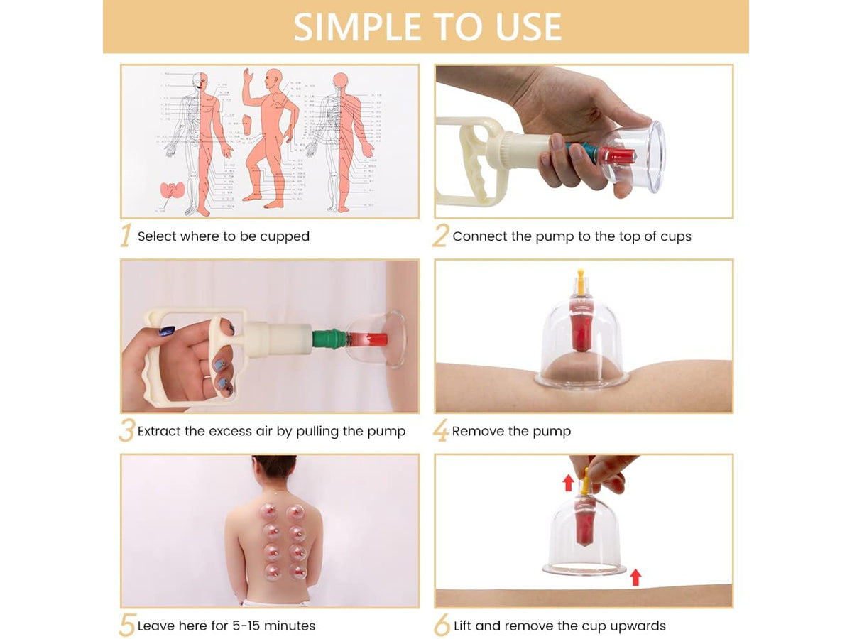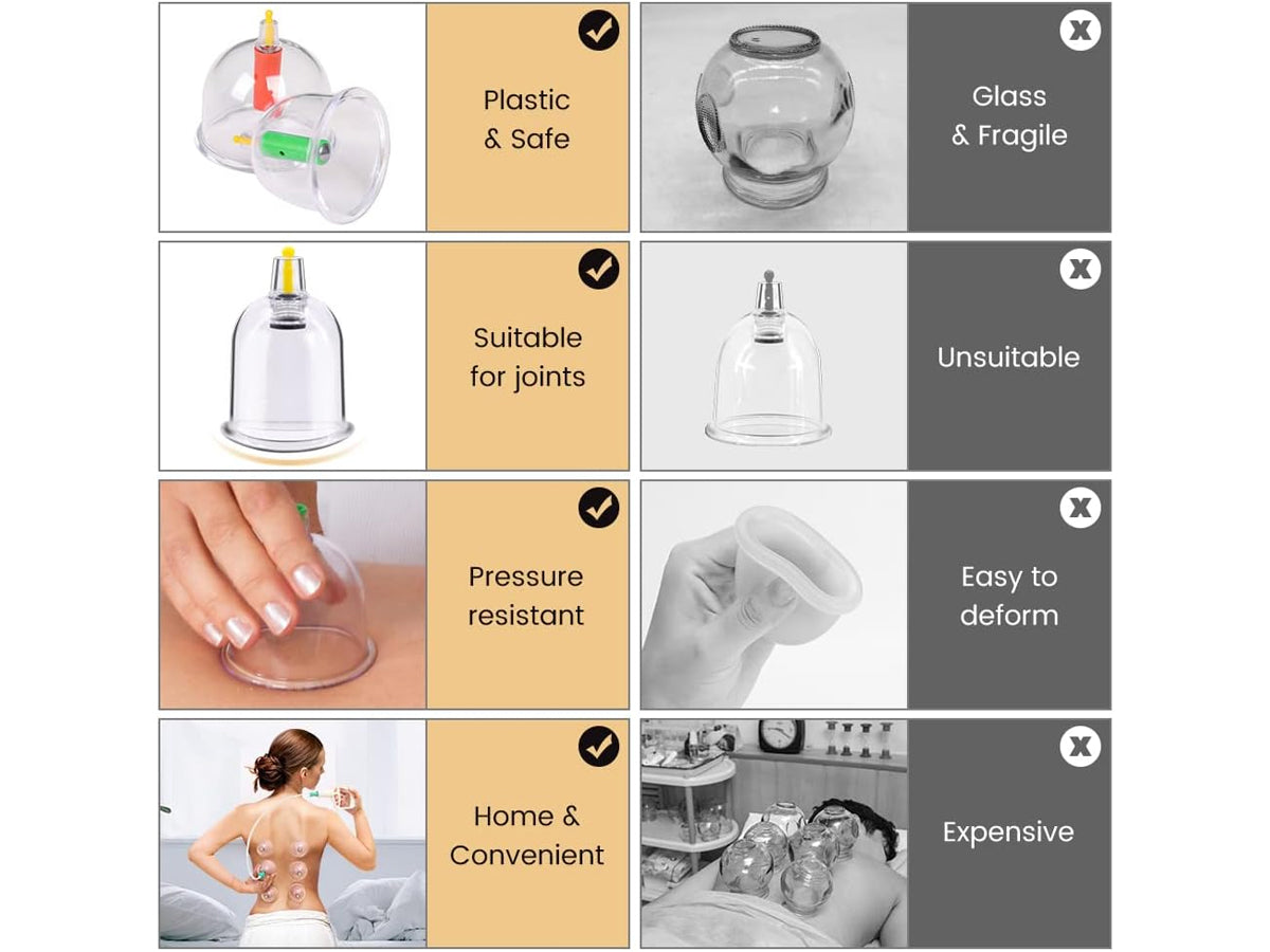 This Vacuum Cupping Set improves blood circulation, relaxes muscles, relieves muscle and joint pain, etc.