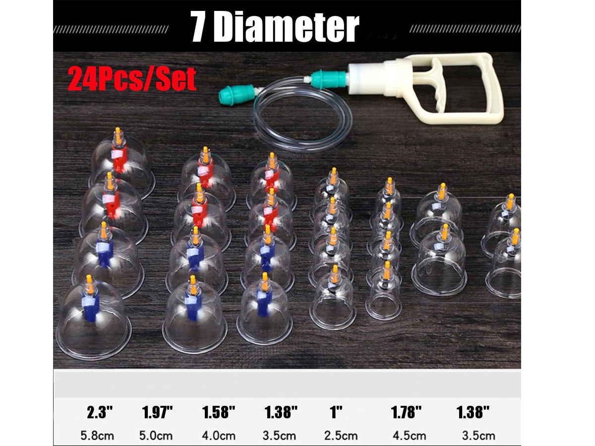 This 24PCs Vacuum Cupping Set is made of environmental protection material, which has no side effects on your skin. The magnetic therapy design can stimulate the role of acupuncture points. The cupping set also comes with its hand pump that can be used to draw air and create a vacuum that is easy to use at home without anyone's help.