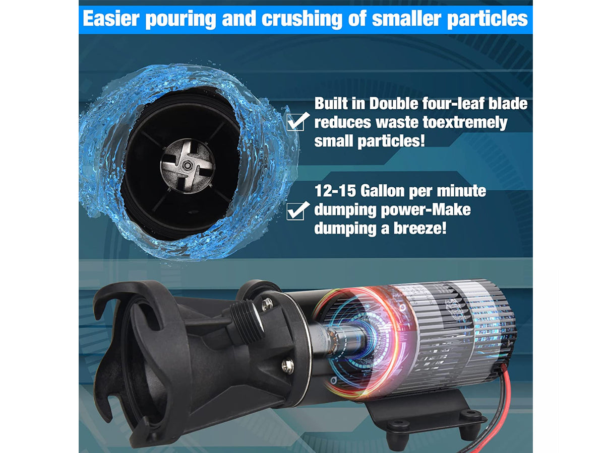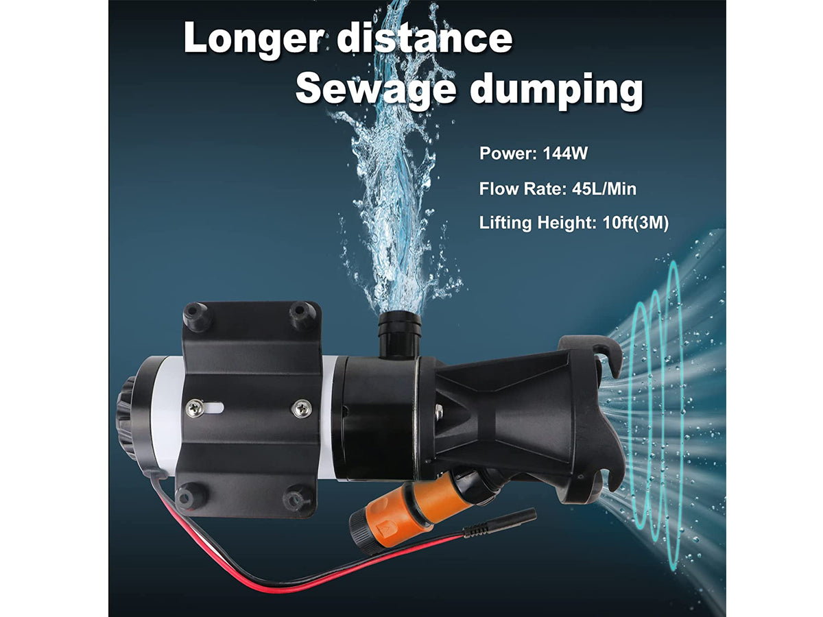 This 24V Macerator pump with anti-clog feature-dislodge clogs without removing hoses. It works with RV, Yachts, etc. plumbing systems to grind up solid waste so it can be pumped more easily and against gravity more effectively. This 24V Macerator pump with self-priming design to prevent liquid from backflowing into the pump. This portable Macerator pump can run dry with no damage. It also has overcurrent and overheats protection.