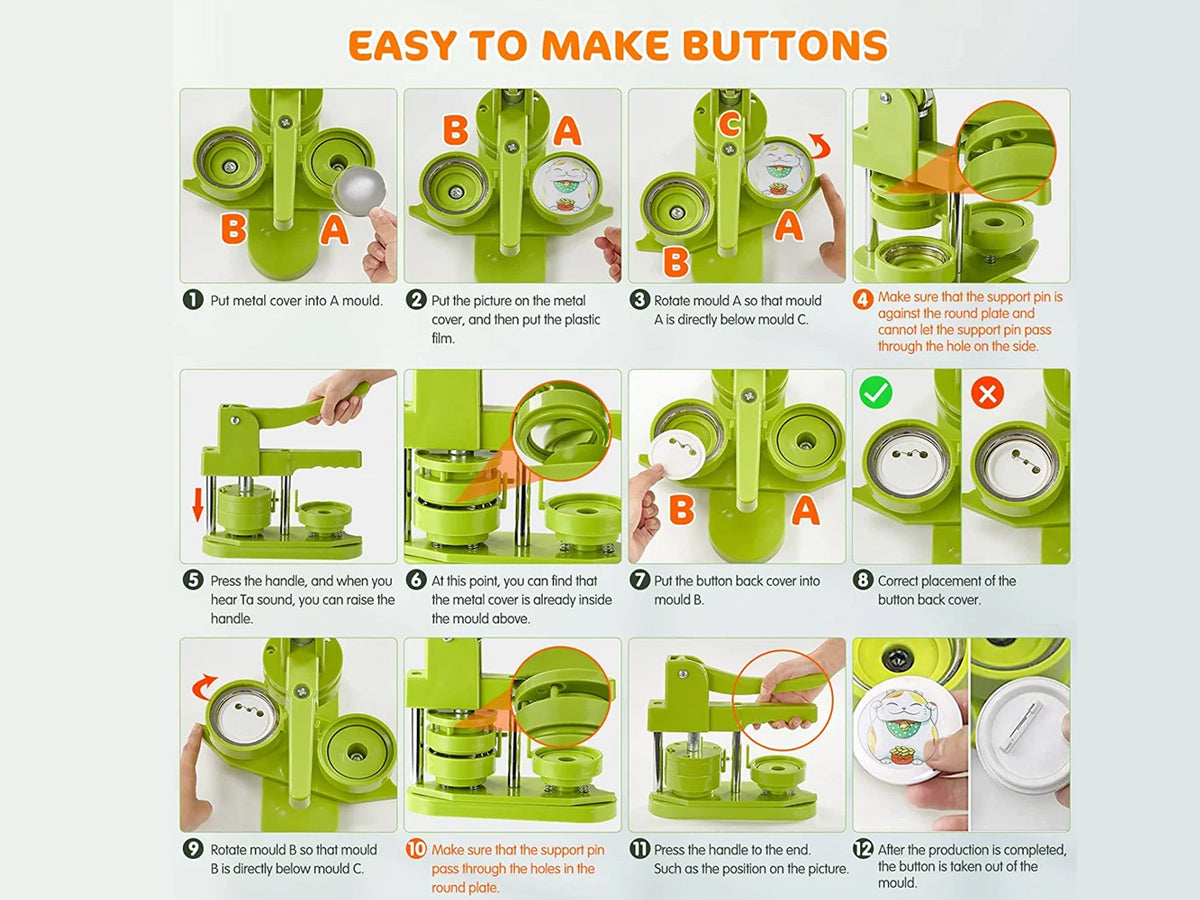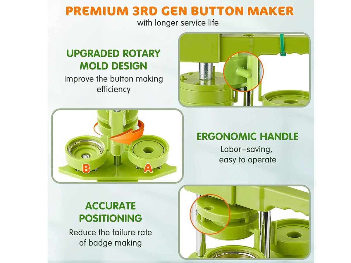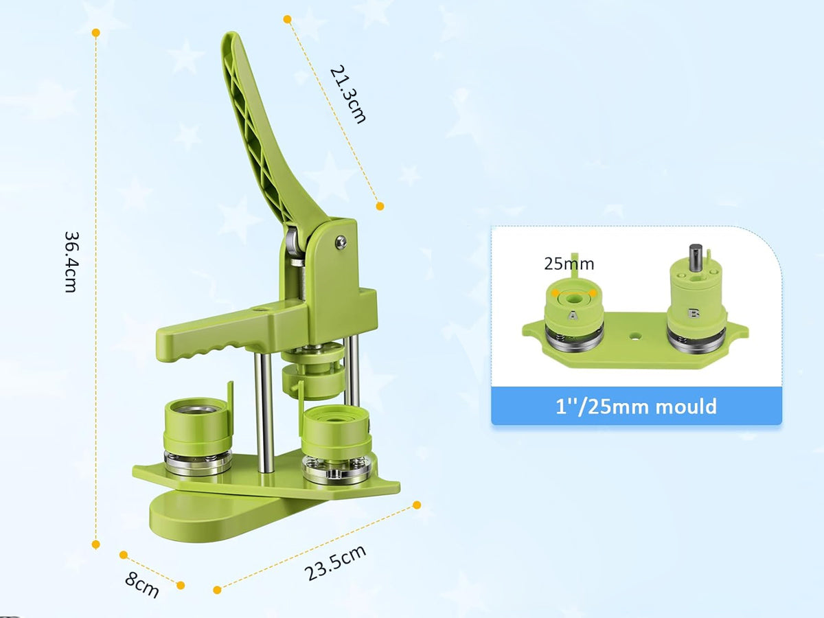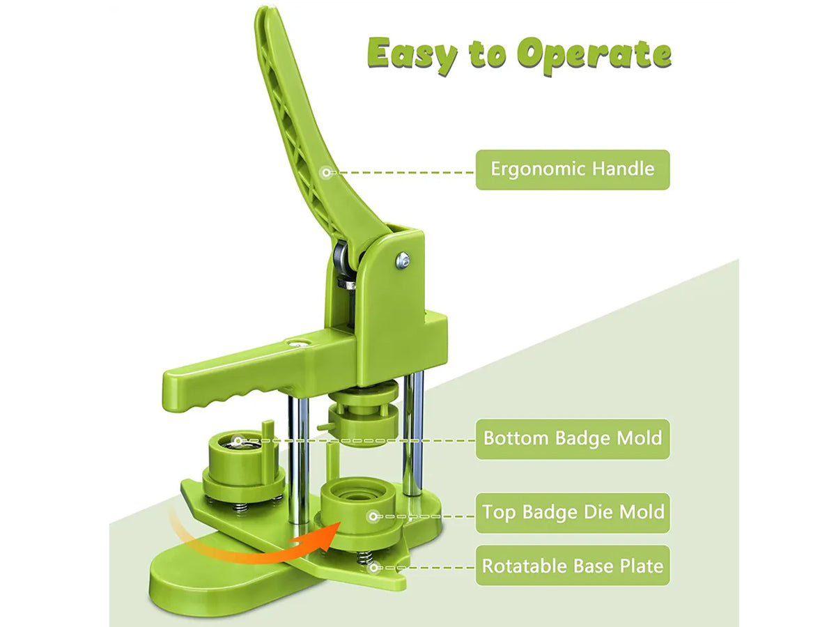 This Button Maker Machine Badge Punch is excellent for pin buttons, key chains, etc. Widely used to create homemade buttons for political campaigns or sporting events.