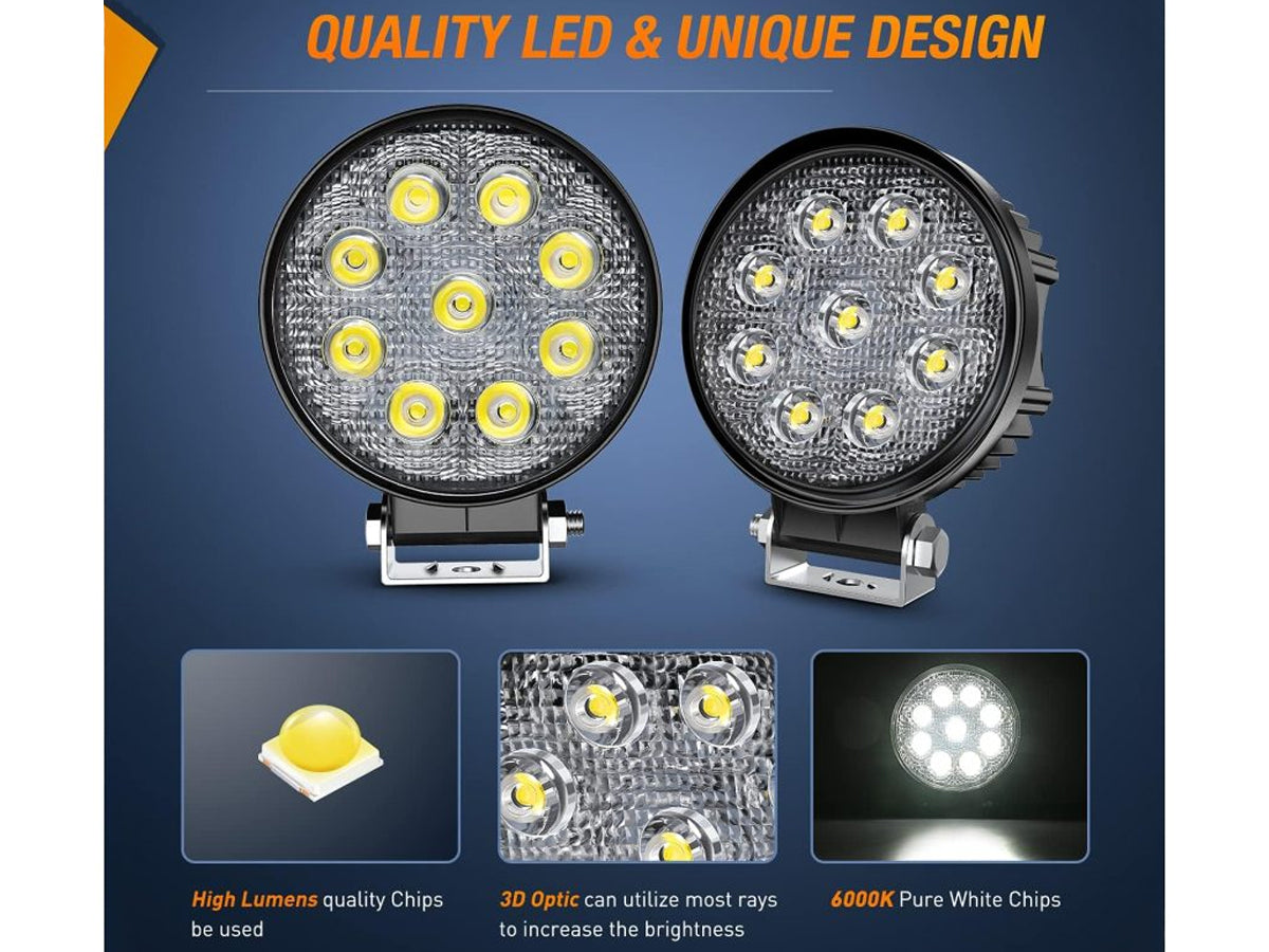 Illuminate your workspace with our 27W LED Work Light, LED Work Light designed for maximum reliability in any environment. LED Work Light with its IP67 rating, this light is waterproof, dustproof, and shockproof, ensuring it stands up to the toughest conditions. Whether you need high-intensity light for vehicles, heavy equipment, or specialized applications, this versatile LED Work Light delivers superior performance with its 9 powerful LEDs and adjustable mounting bracket.