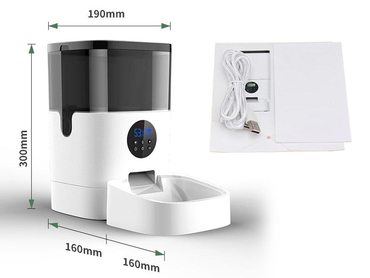 - Auto Feeding: 1~20portions/time, ~10g/portion, 4 meals per day