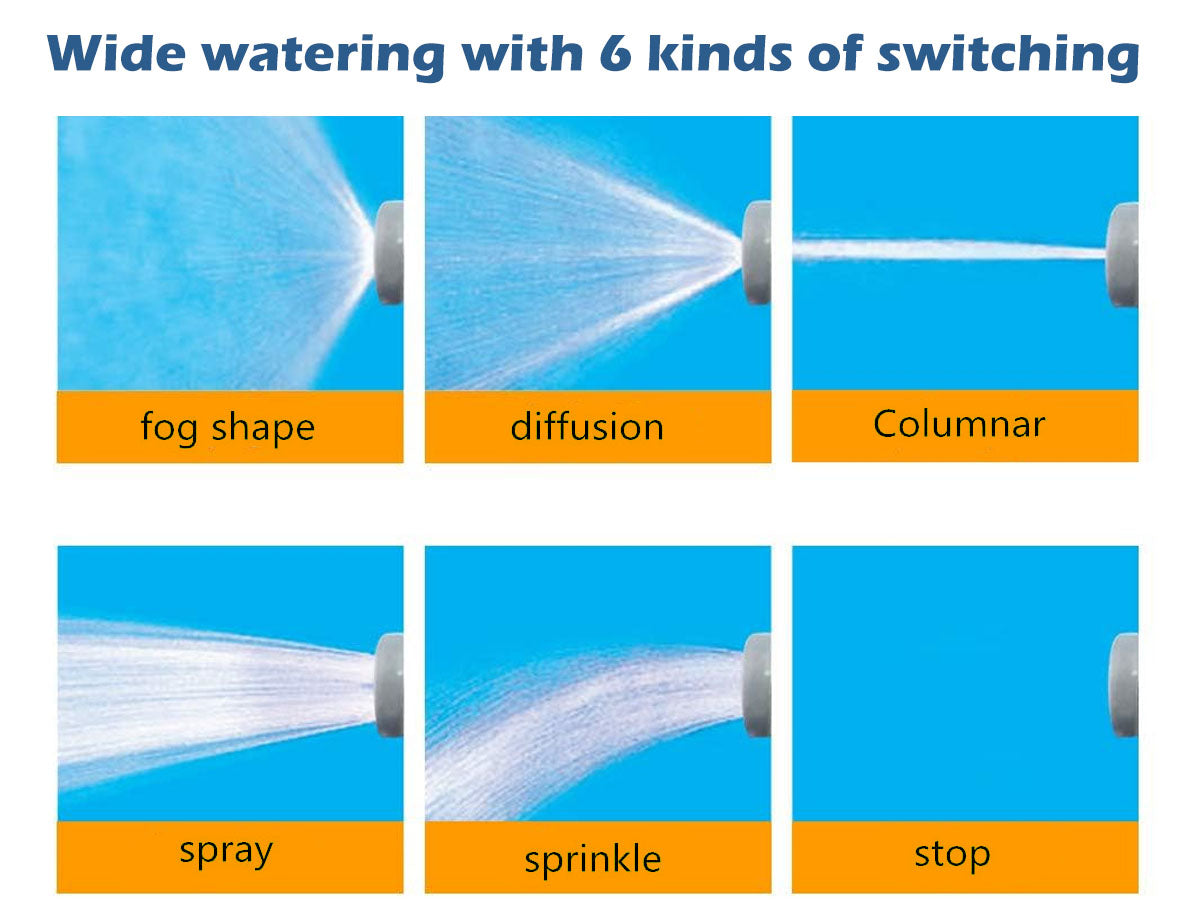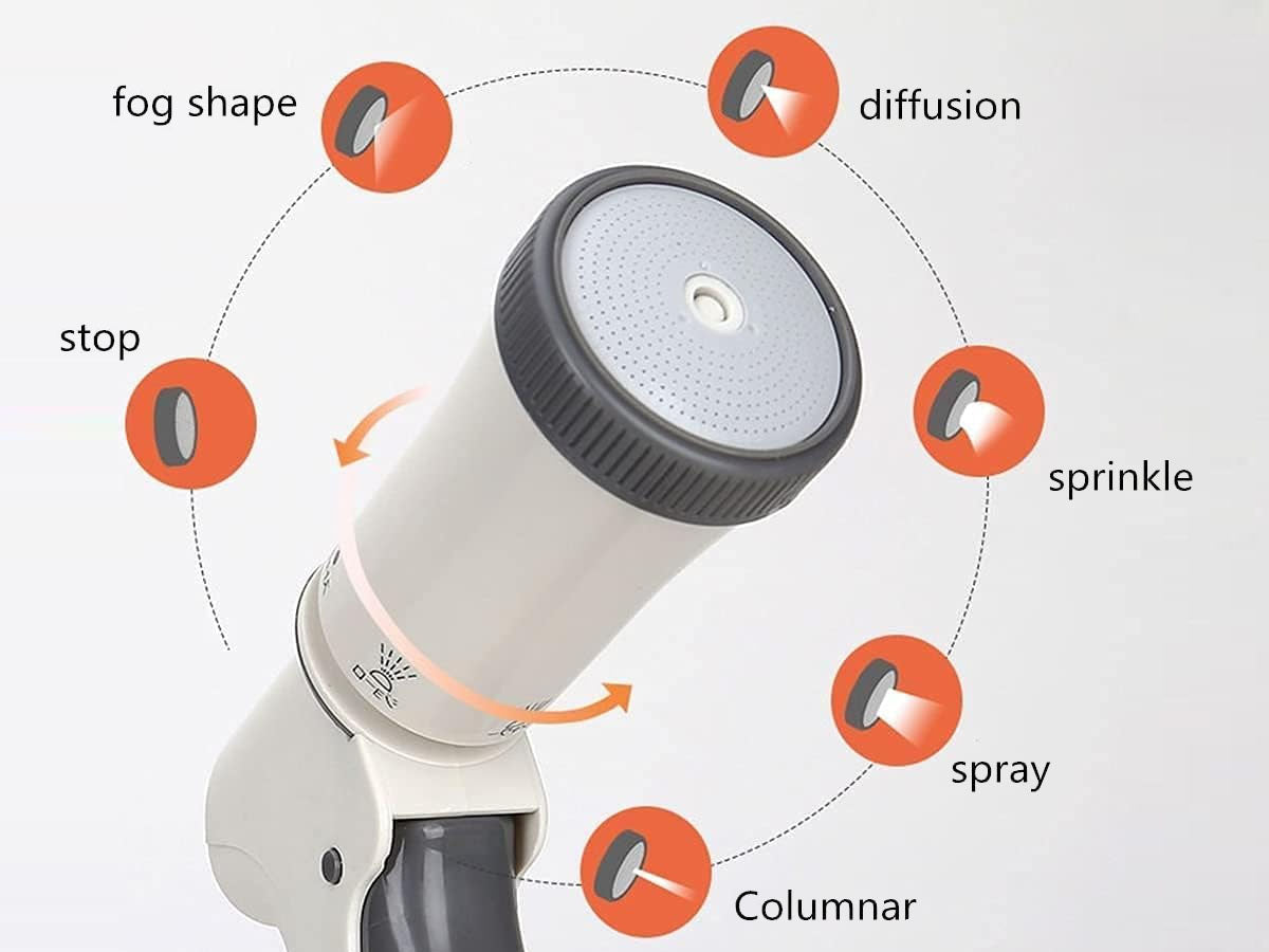 - Adjustable five-pattern spray modes columnar, spray, sprinkle, diffusion, and fog shape