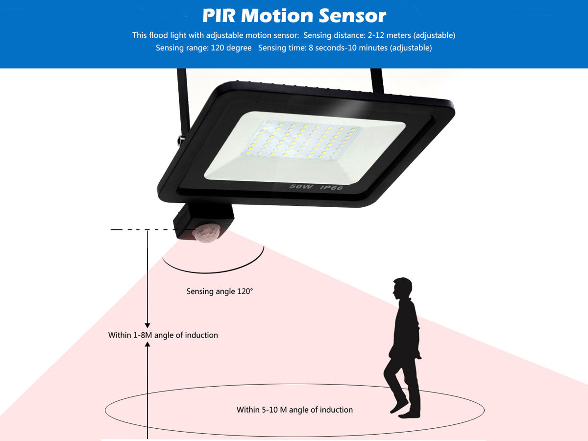 You can use it anywhere indoor/outdoor because it is IP66 Waterproof. The Motion sensor has three different setting Light control adjustment, Delay adjustment and Sensitivity adjustment. When a person enters the sensing range, it can be automatically turned on, and it can be automatically turned off after the person leaves.