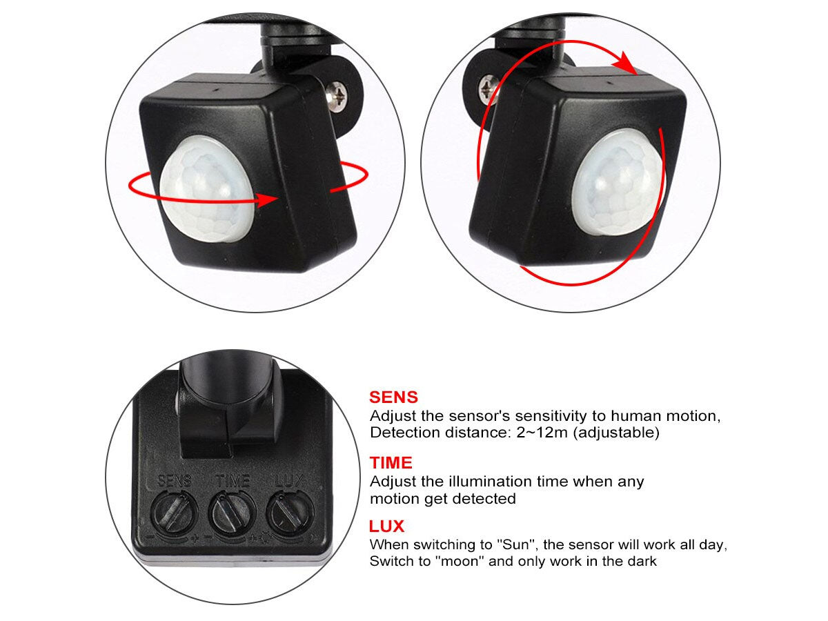 SENS, Sensitivity adjustment will adjust the sensing distance of the human body maximum distance is 8 meters.