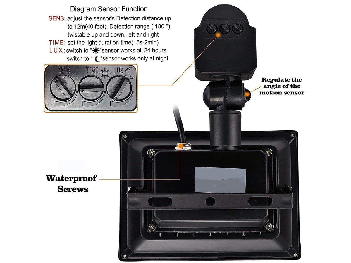 This 30W Waterproof LED Flood Light automatically turns ON when motion is detected within 12m. The light is equipped with a rotatable sensor to make sure that the light will work perfectly. This security flood light uses the latest LED technology and it has extremely low energy consumption, yet is super bright and powerful.