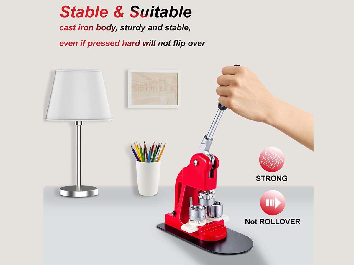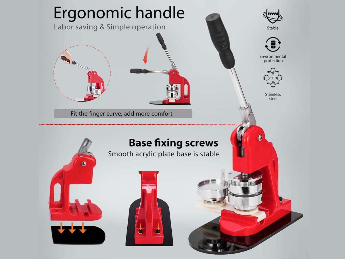 This Button Badge Machine has an ergonomics designed steel handle that offers a comfortable grip and saves energy. It can save more effort and improve your efficiency. The sturdy base of the button press allows you to interchangeable dies more accurately. Smooth and easy to install.