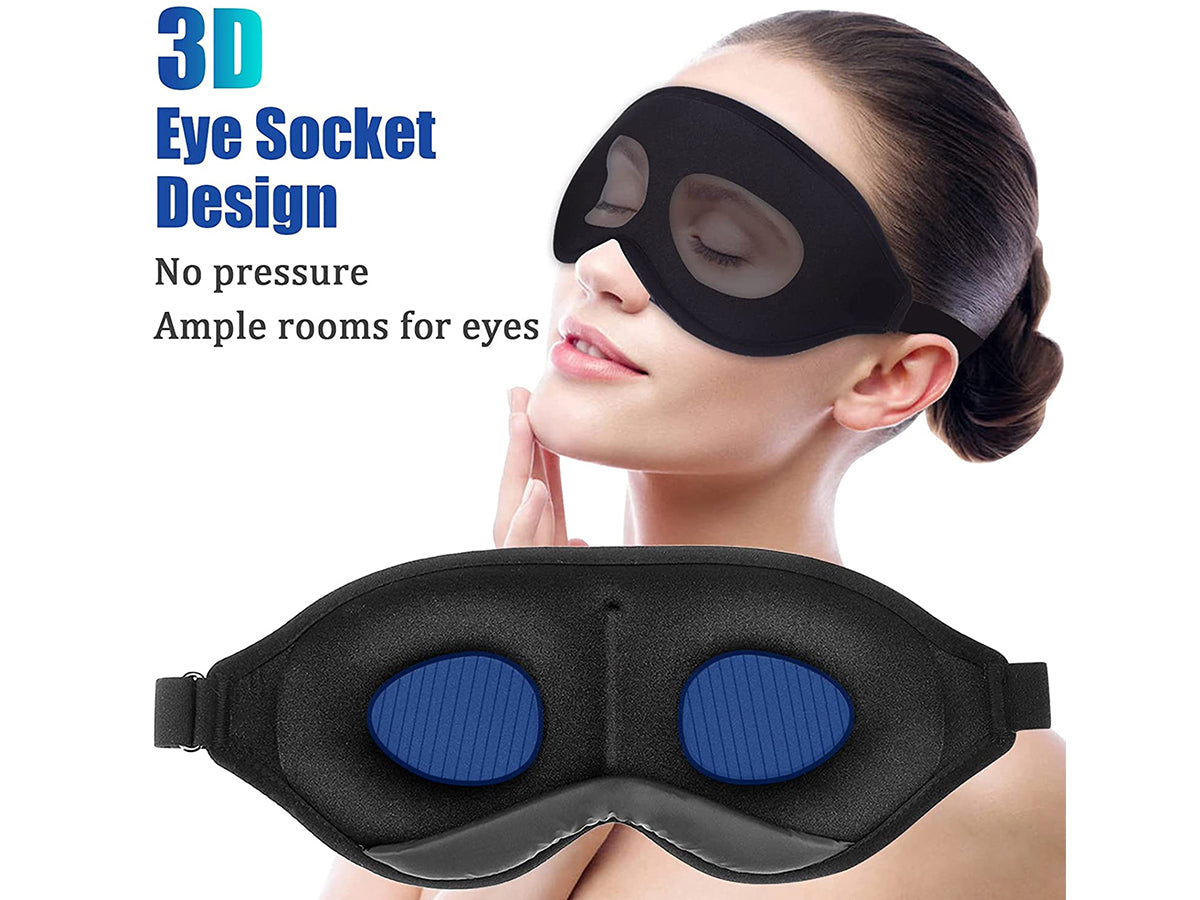 This 3D Sleep Mask can fit the curve of the face and block out light perfectly and bring you into Deep Sleep Quickly. Deep 20mm 3D Contoured Cup Eye Sockets give you Larger Eye Space, no Pressure on Eyeballs and don't ruin your Eye Makeup. It has a Flexible Sliding Buckle, Elastic and Adjustable Headband for Different Head Sizes. Easy to get Comfortable Tightness and stay in place in all Sleeping Positions.
