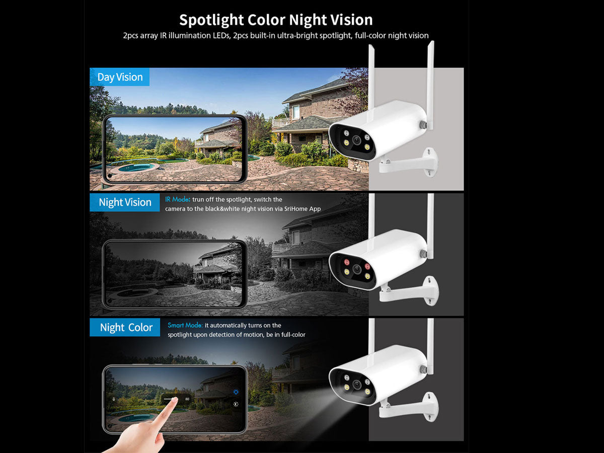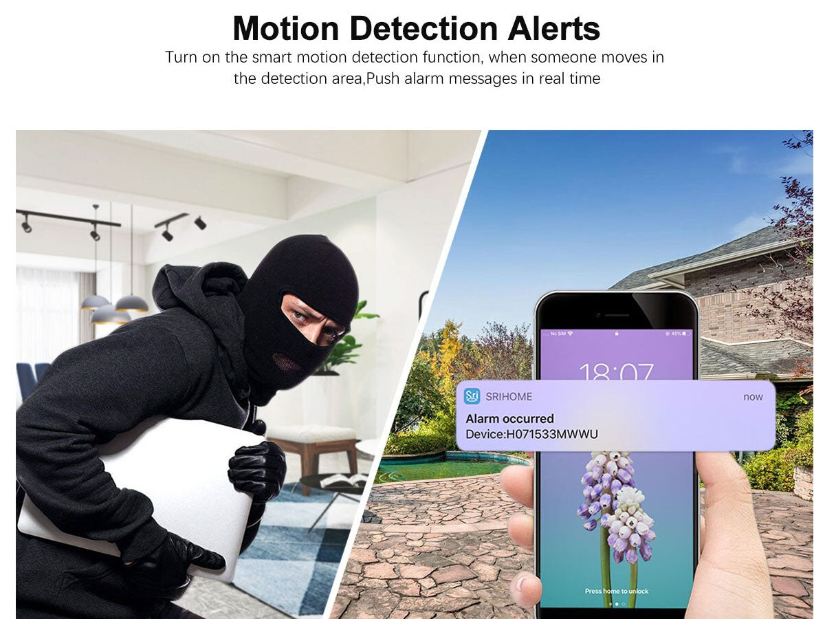 This security camera features two-way voice chat with a built-in speaker and high-sensitivity microphone. Its IP66 waterproof and dustproof design ensures durability. With PIR motion detection, you'll receive instant alerts when someone is nearby. It supports NVR storage and allows multi-user access for easy sharing with family members.