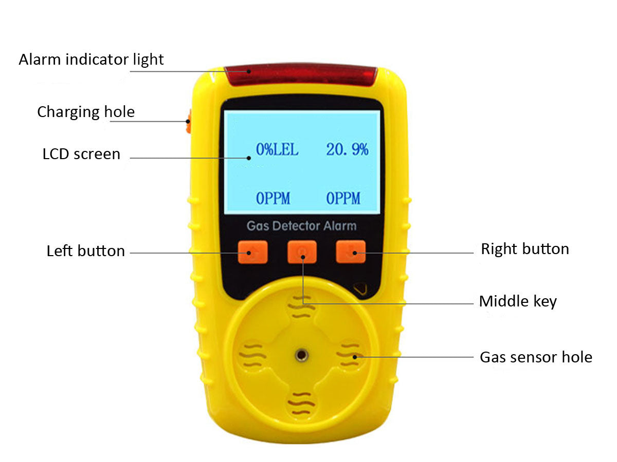 Experience unmatched gas detection efficiency with our 4-in-1 Wireless Rechargeable Gas Detector. Equipped with advanced features, this Gas Detector ensures utmost safety in various environments. The Gas Detector clear LCD display with adjustable backlight provides crystal-clear readings, while the triple alarm modes (sound, flash, vibration) alert you promptly in case of gas leakage. Gas Detector offers comprehensive protection with the ability to detect O2, CO, H2S, and EX gases.