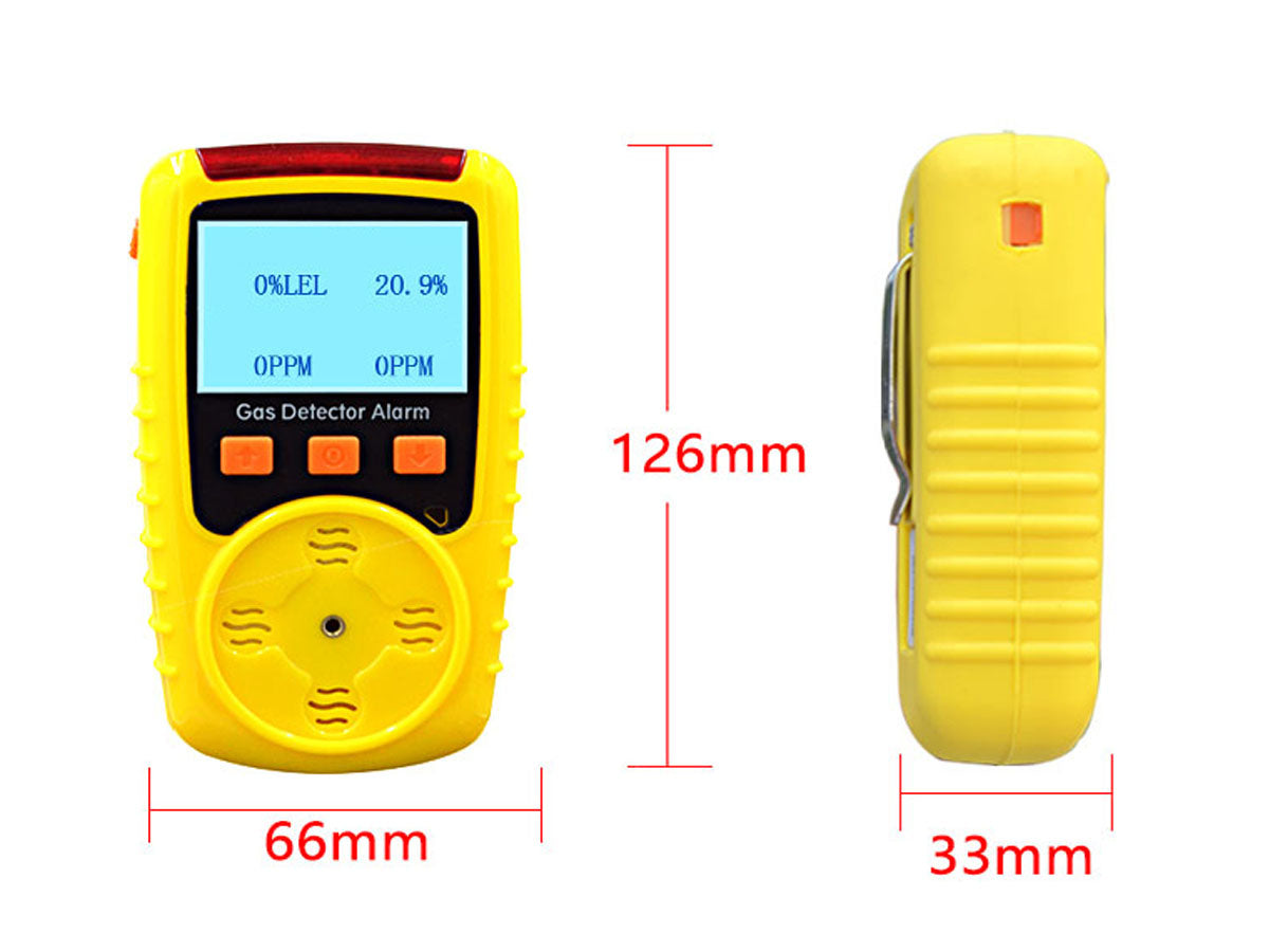 - Gas Detector Size: 12.6 x 6.6 x 3.3 cm