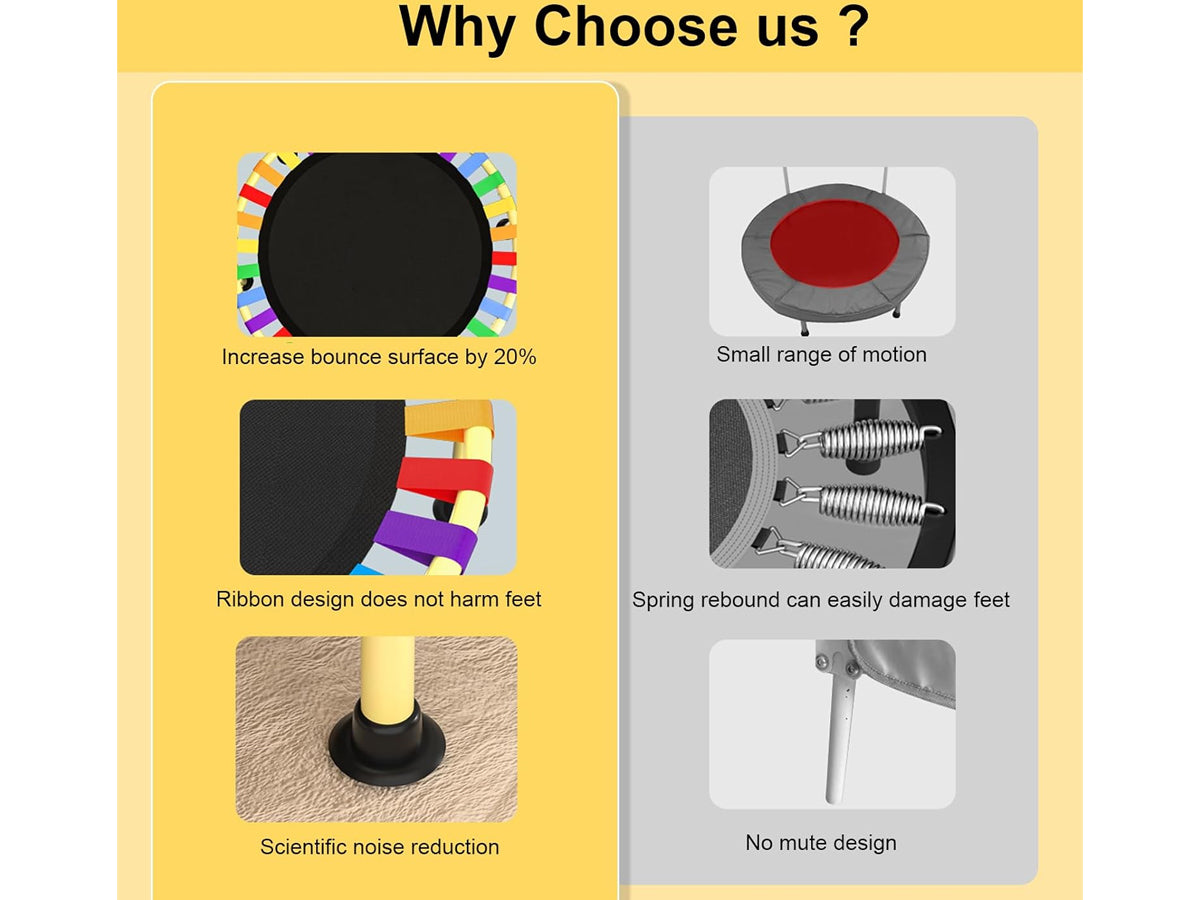 Achieve a fun and effective workout with this 40" Foldable Kids Trampoline, designed for stability, durability, and versatility. Kids Trampoline is Perfect for cardio, balance training, or low-impact exercises, it features a heavy-duty frame, upgraded suction cups, and a height-adjustable handle for added control. With a 300kg weight capacity and premium construction, this Kids Trampoline is suitable for all ages and fitness levels. Use it indoors or outdoors for a full-body workout that’s both energising and joint-friendly.