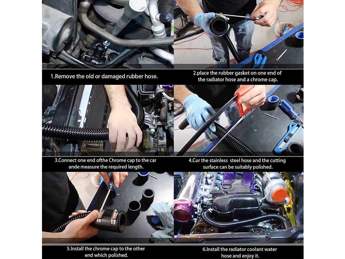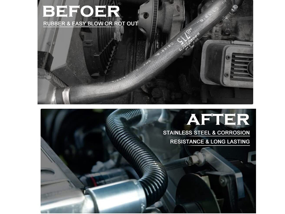 Upgrade your radiator hose with our Stainless Steel Radiator Coolant Water Hose Kit. Crafted from high-quality stainless steel, this Stainless Steel Radiator Coolant Water Hose Kit offers exceptional durability, corrosion resistance, and heat tolerance. Unlike rubber hoses, it won't deteriorate or rot, ensuring long-lasting performance.