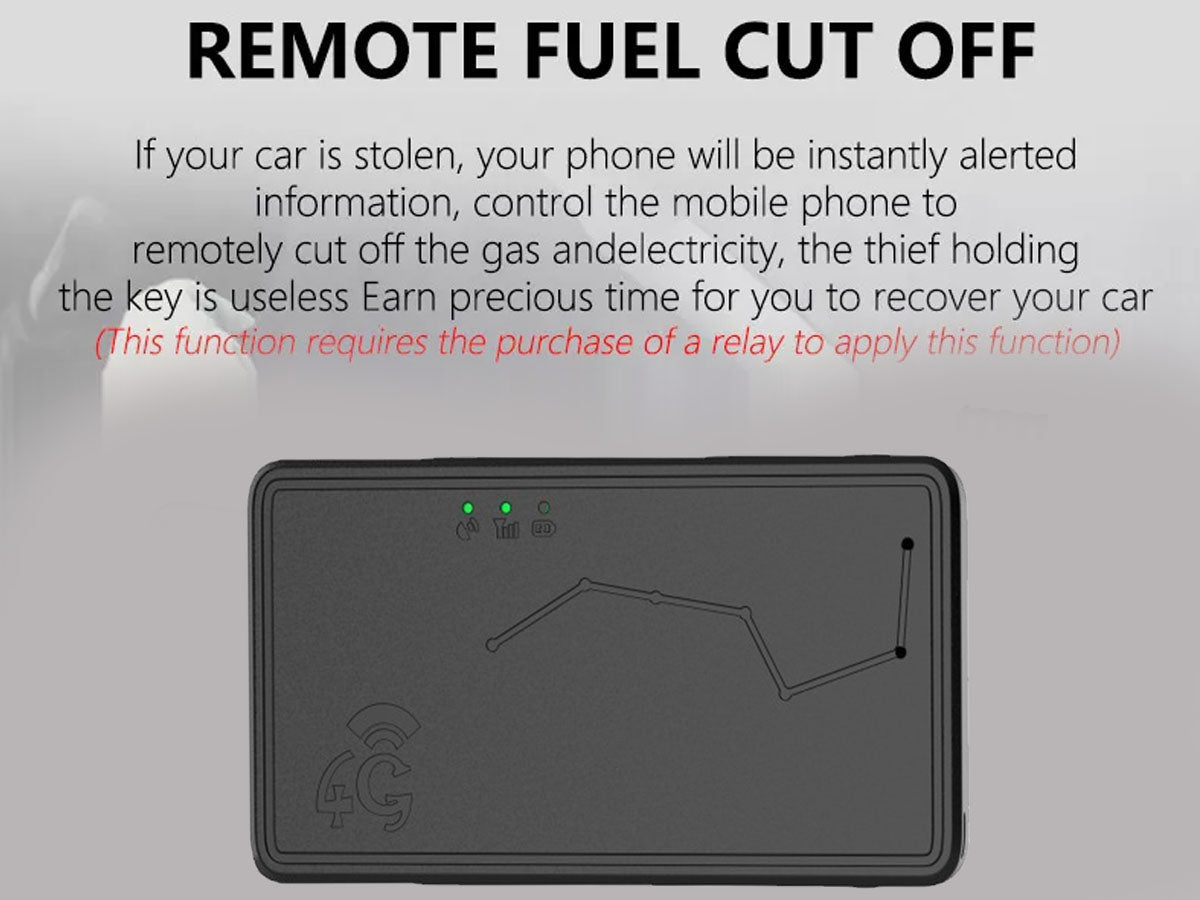 The G-Fence Alarm can define geographic zones, that alert you anytime the GPS tracker enters or exits a zone. You can Remotely stop your vehicle with the help of an app in case of emergency.