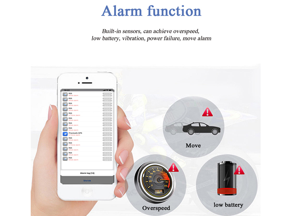 - Multiple alarms including G-Fence, overspeed, low battery, power failure, and more
