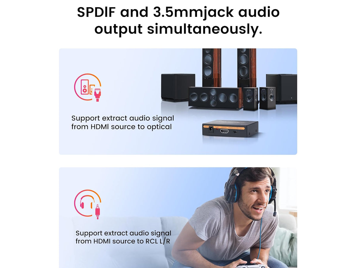 This HDMI to HDMI Converter is Ideal for home theatre systems, multi-display setups, and professional audio-visual installations requiring high-quality video and audio extraction.