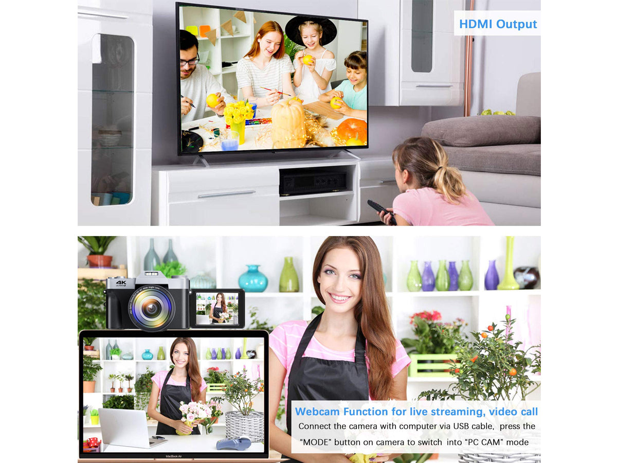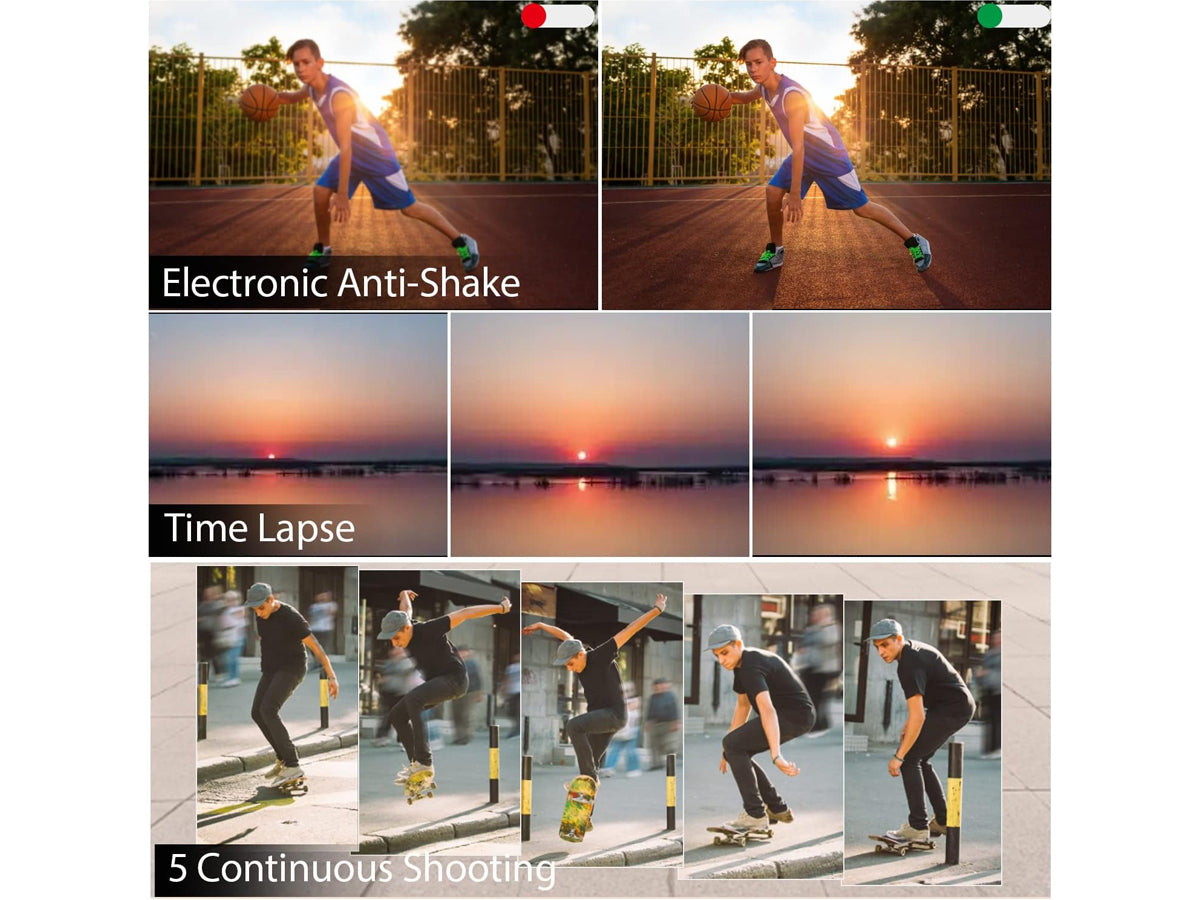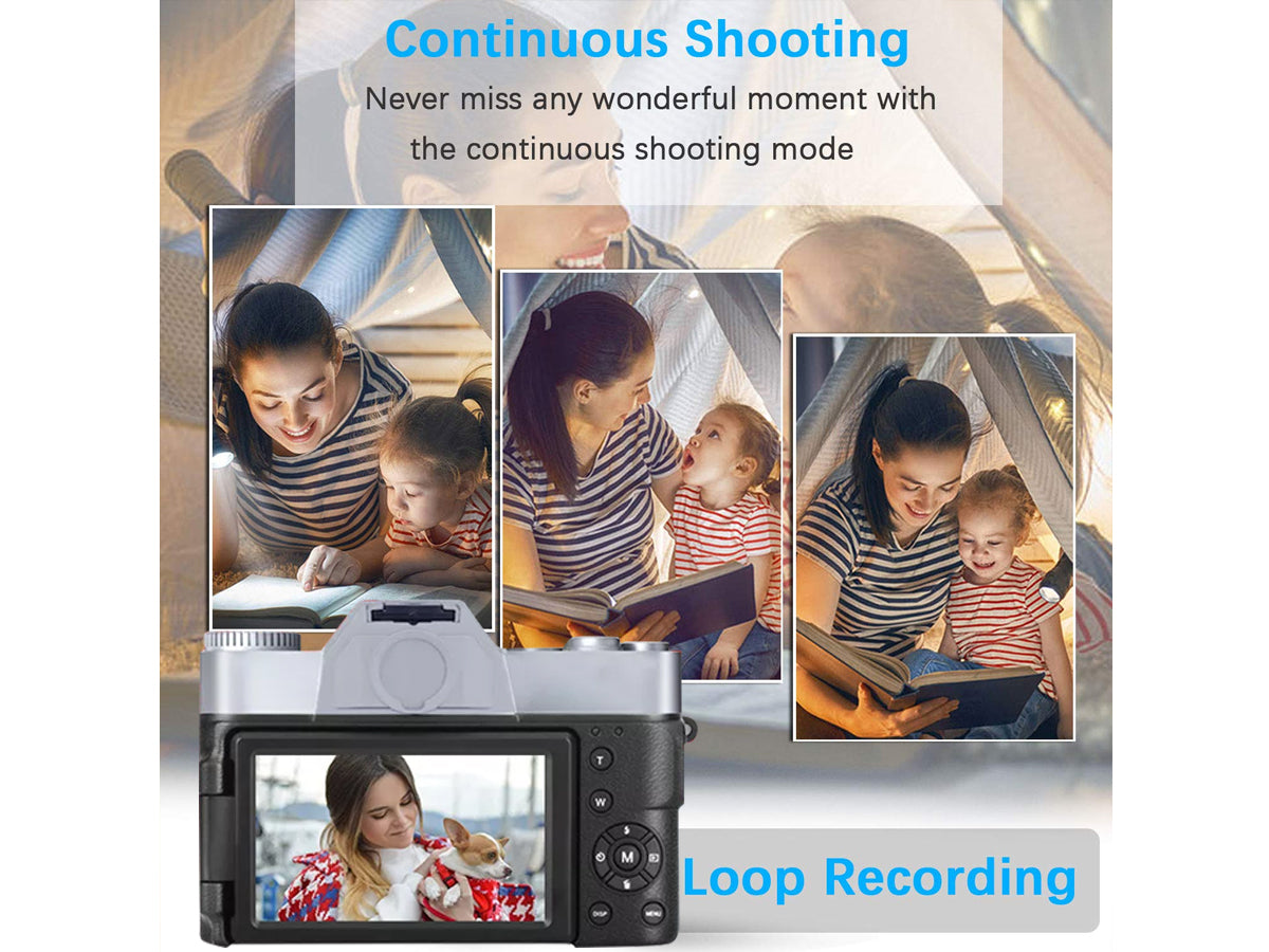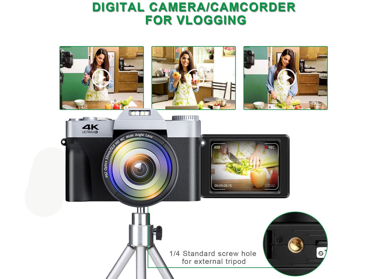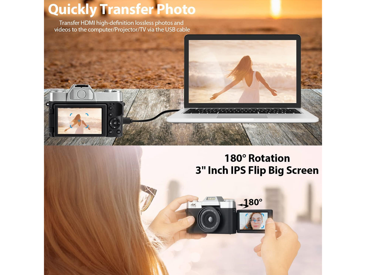This Rechargeable WiFi Video Camera with 4k/24fps smooth video recording and photographs at 48MP can better help you capture. It also has a built-In WiFI Module that can connect with mobile hotspots. It can send photos and videos directly to your phone, webcam, live streaming, etc. It also supports 16X Digital Zoom, Video Pause, Recording while Charging, anti-shakes, Motion Detection, Loop Recording, Slow motion, Time-lapse, Continuous Shooting, Self-Timer.