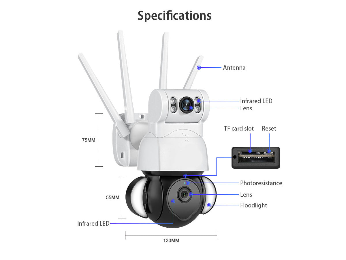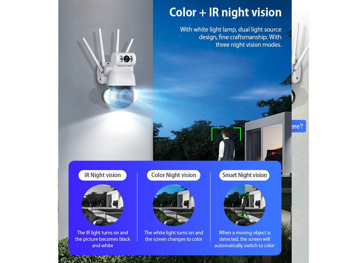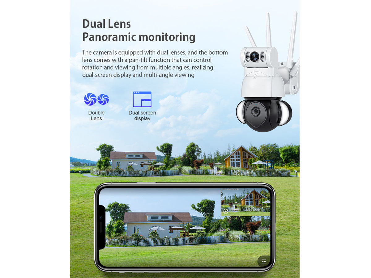 - Dual Lens 4MP Wireless WiFi Smart Security Camera