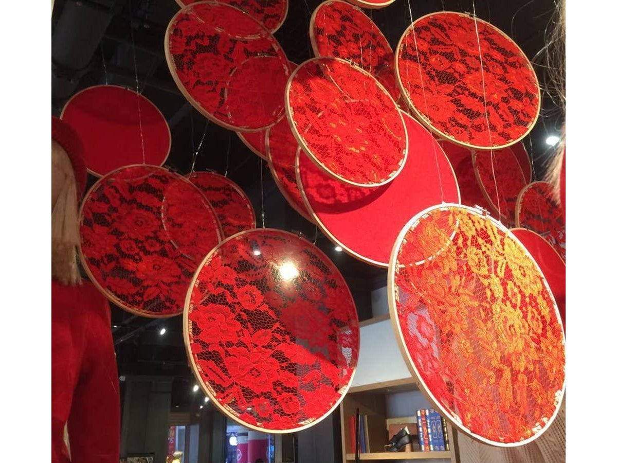 You can use an embroidery ring as a display frame with embroidery edges embellished by lace, paint, gems or other materials. You could even make easy and cute wreaths by wrapping ribbons and flowers around embroidery circles to be a good decoration on the wall