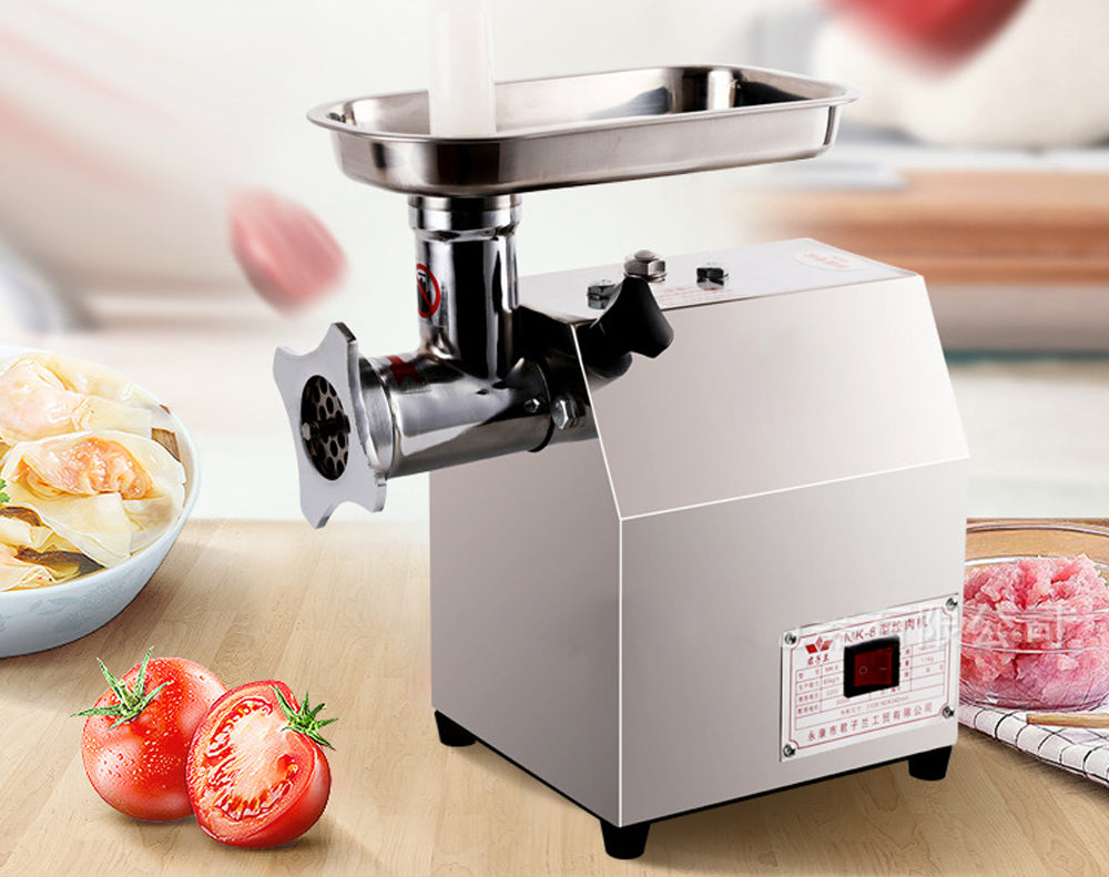 Brand New MK-8 Stainless Steel Electric Meat Mincer Grinder Sausage Maker has a 500W 100% Pure Copper Motor. Production Capacity is 100kg/h. The meat mincer grinder is completely made of stainless steel and meets the highest hygiene standards. If you’re looking for a heavy-duty mincer grinder that can grind large amounts of meat with relative ease, then this mincer is the best option for you. Best for both home and commercial use.