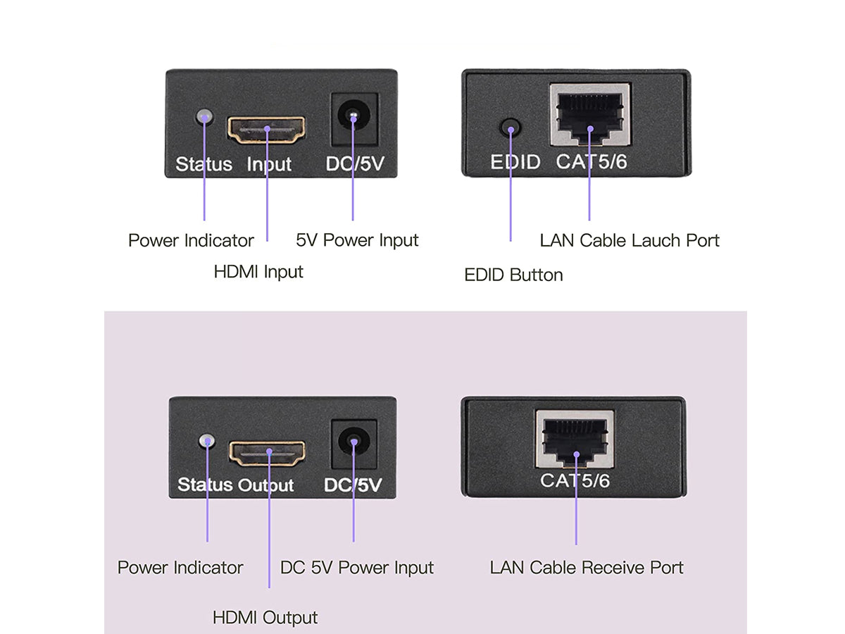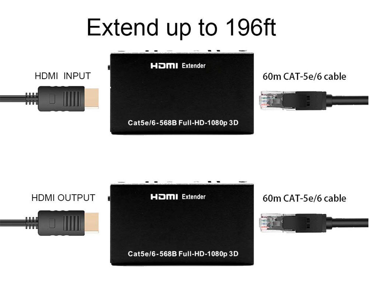 - HDMI Extender Works with CAT5 or CAT6 Ethernet cable