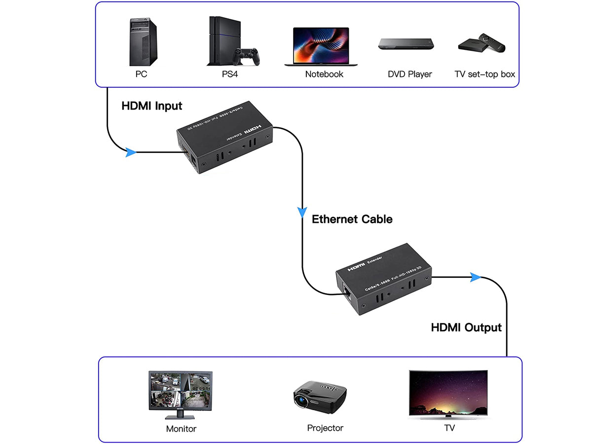 - HDMI Extender Compatible with your PC, DVD Player, PS3, PS4, HD Box, Android TV Box