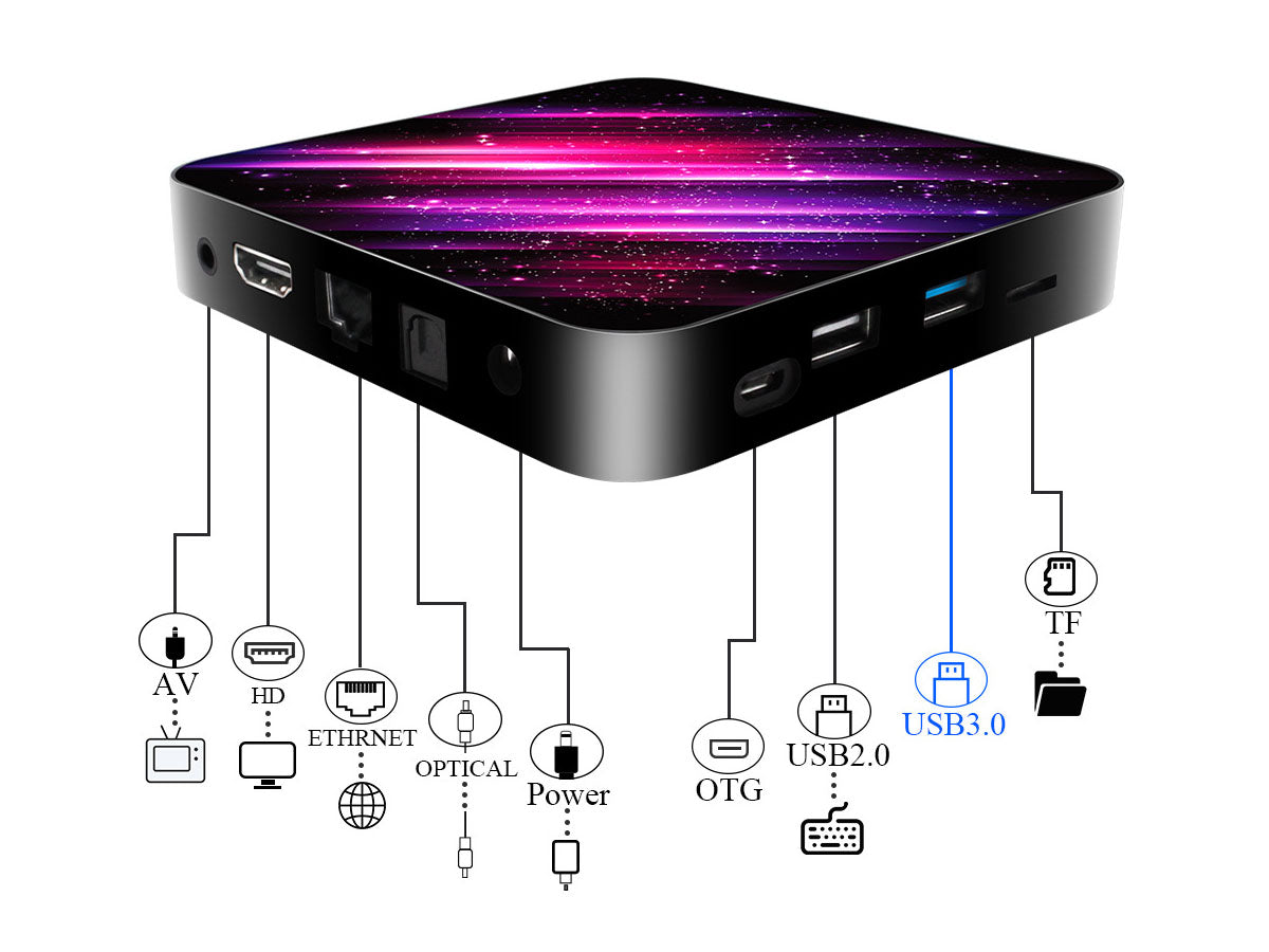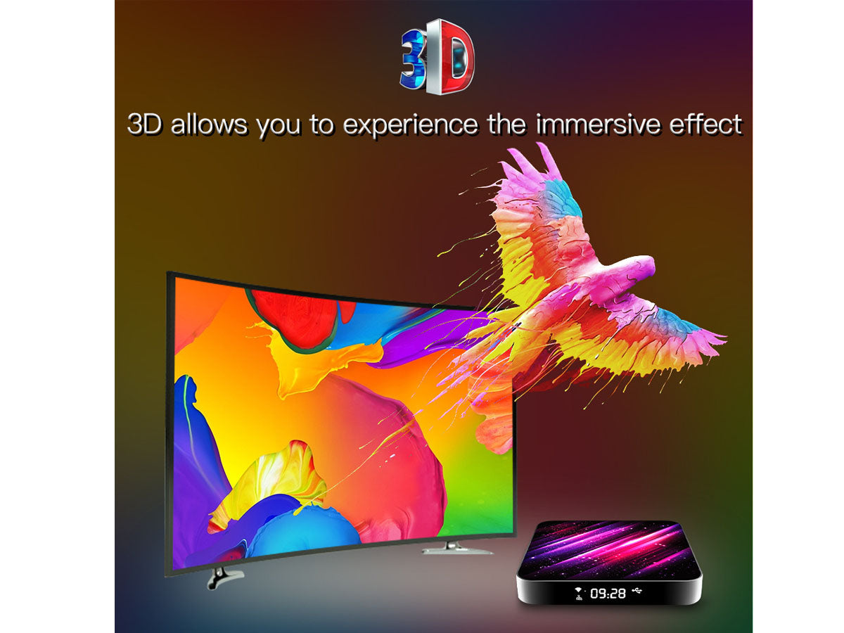 TV box supports 6K resolution and 3D function. You can watch Ultra HD movies freely at home at any time without going to the cinema.