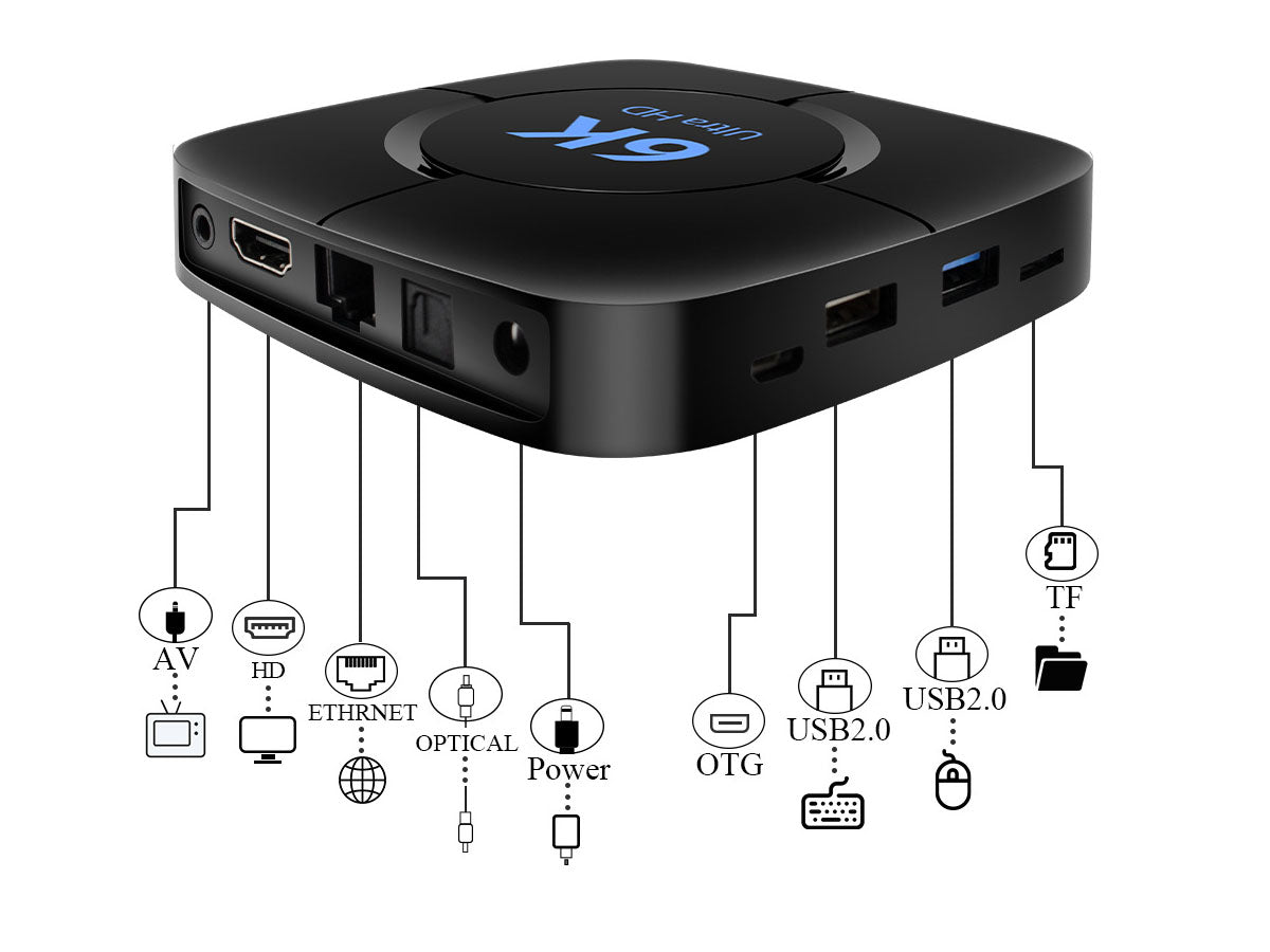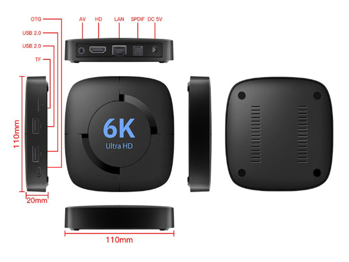 - Interface: USB 2.0, RJ45, TF card slot, AV port, HDMI port, DC port, OTG