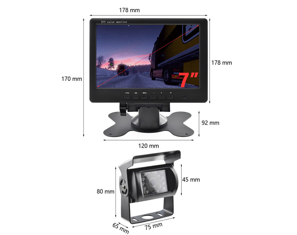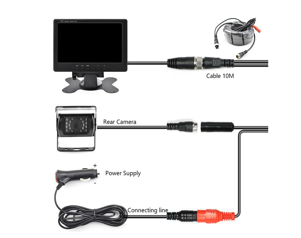 Upgrade your vehicle's safety and convenience with our 7" Car Reversing Camera Kit. The Car Reversing Camera kit includes a 7" IPS LCD digital screen, delivering stunning 800 x 480 HD resolution. IP67 waterproof, shockproof, and anti-fog reversing cameras ensures durability and reliability. Support 2 video inputs, high-resolution image, full-color display. Compatible with DVD, VCD, camera, STB, and satellite receiver.