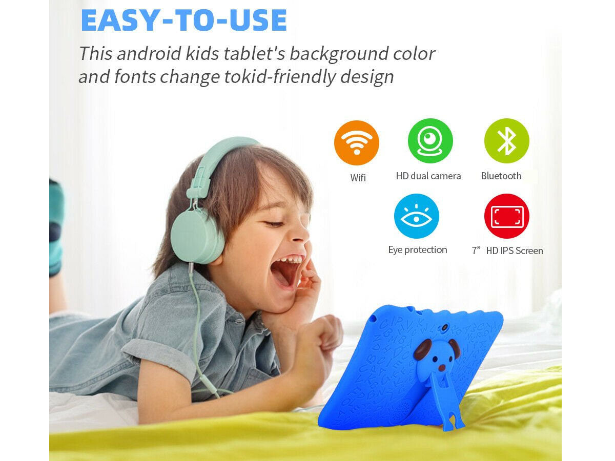 This 7" Kids Rechargeable Tablet 1GB/8GB is the best tool to help your kids discover, learn and grow, educational learning and practice contents are designed just for your kids to learn while having fun. High Quality, Soft and Lightweight case to feel comfortable hold in hand and meanwhile to protect against any drops and bumps caused by kids at play.