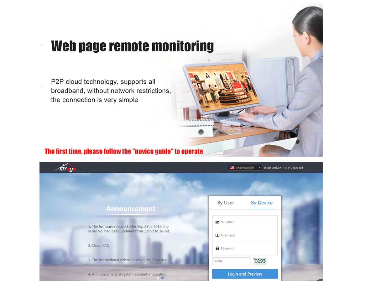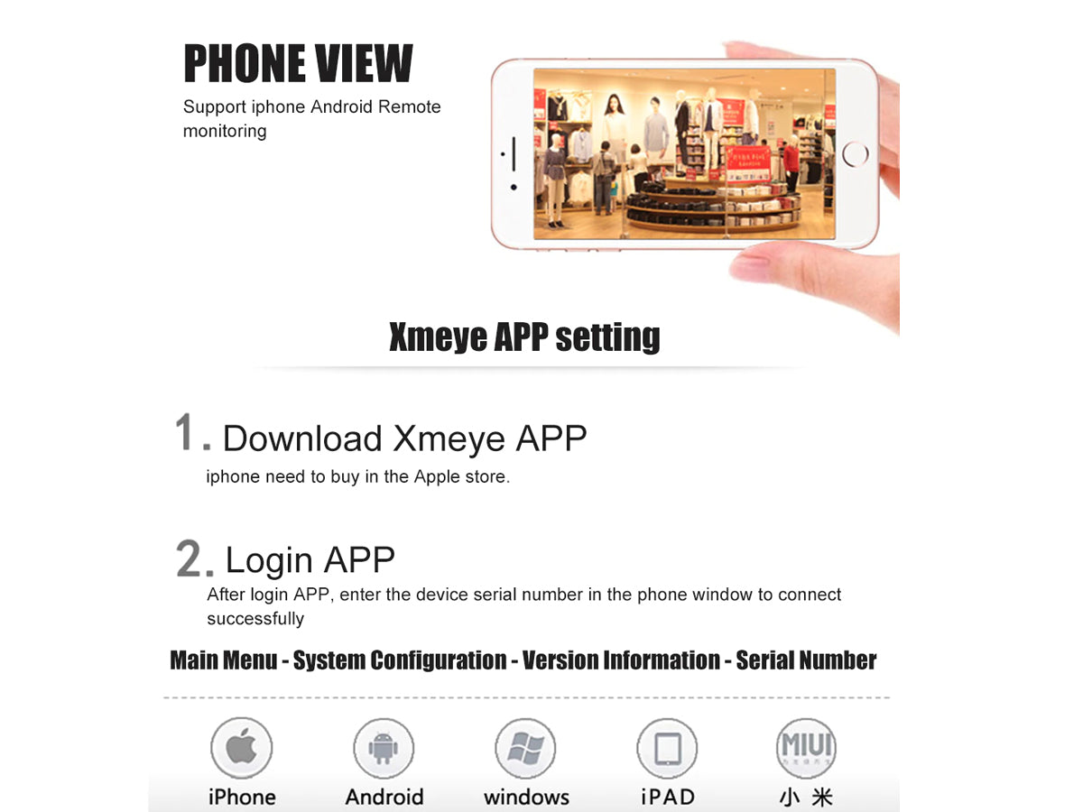 - Visit remotely by P2P Cloud or APP XMEye